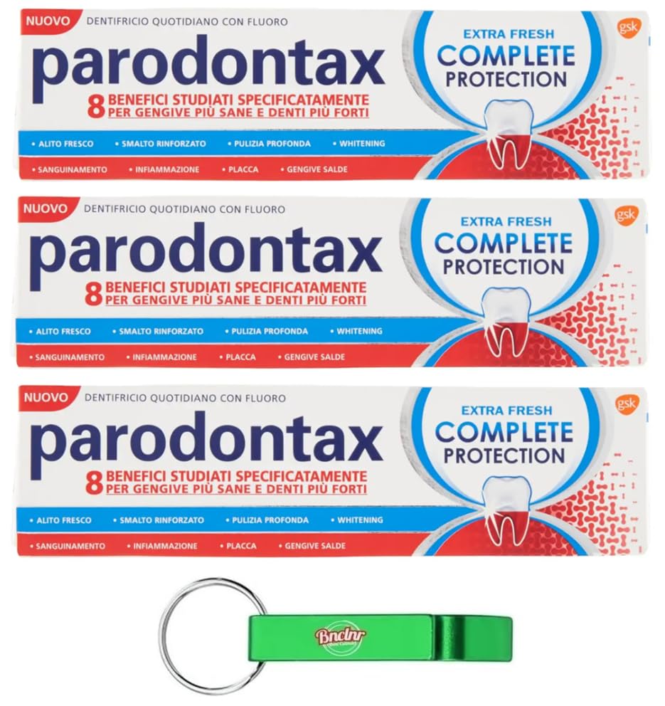 3x Parodontax Dentifricio Complete Protection Extra Fresh,Zahnpasta für gesundes Zahnfleisch und starke Zähne,75ml + Beni Culinari Kostenloser Schlüsselanhänger