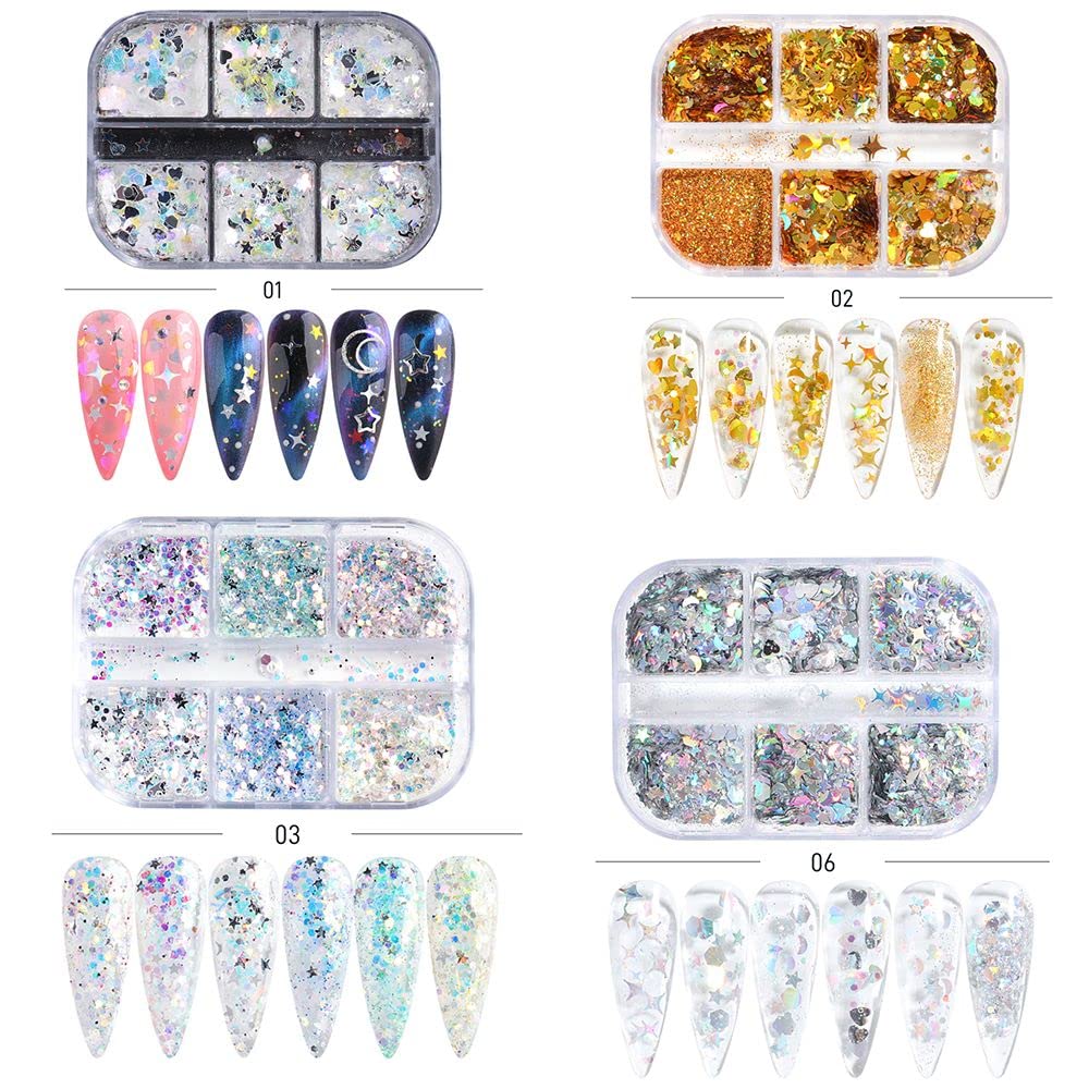 4 Boxes DIY Chunky Sparkly Slices Holographic Nail Sequins Summer Star Moon Glitter Flakes