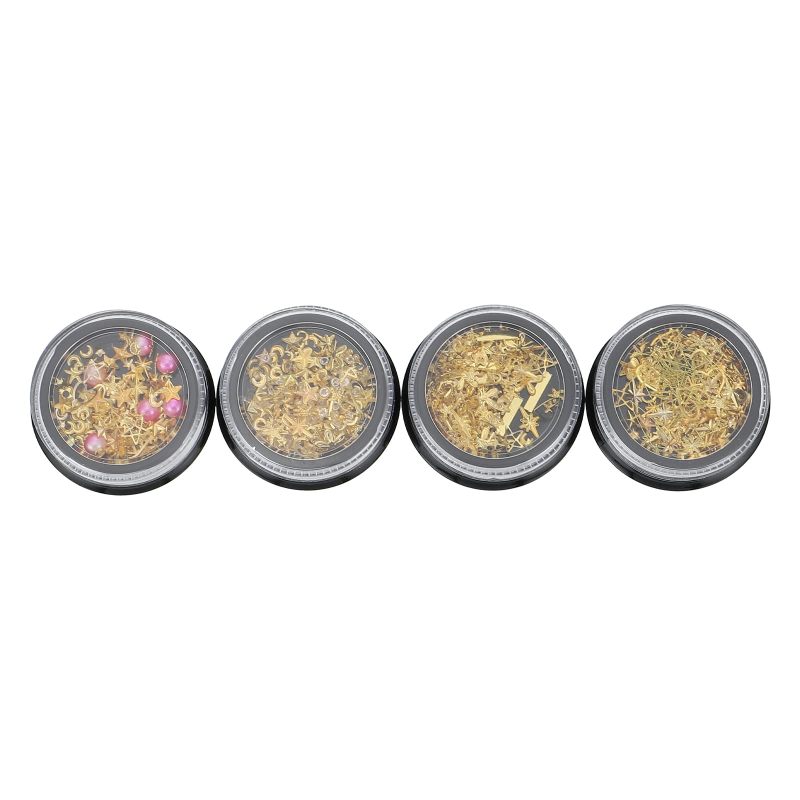 4 Boxes Nail Art Accessories metallic nail art stickers nail metal jewels sparkle stickers metal nail jewelry glitter manicure charms nail beads gold metal delicate Stud 3d