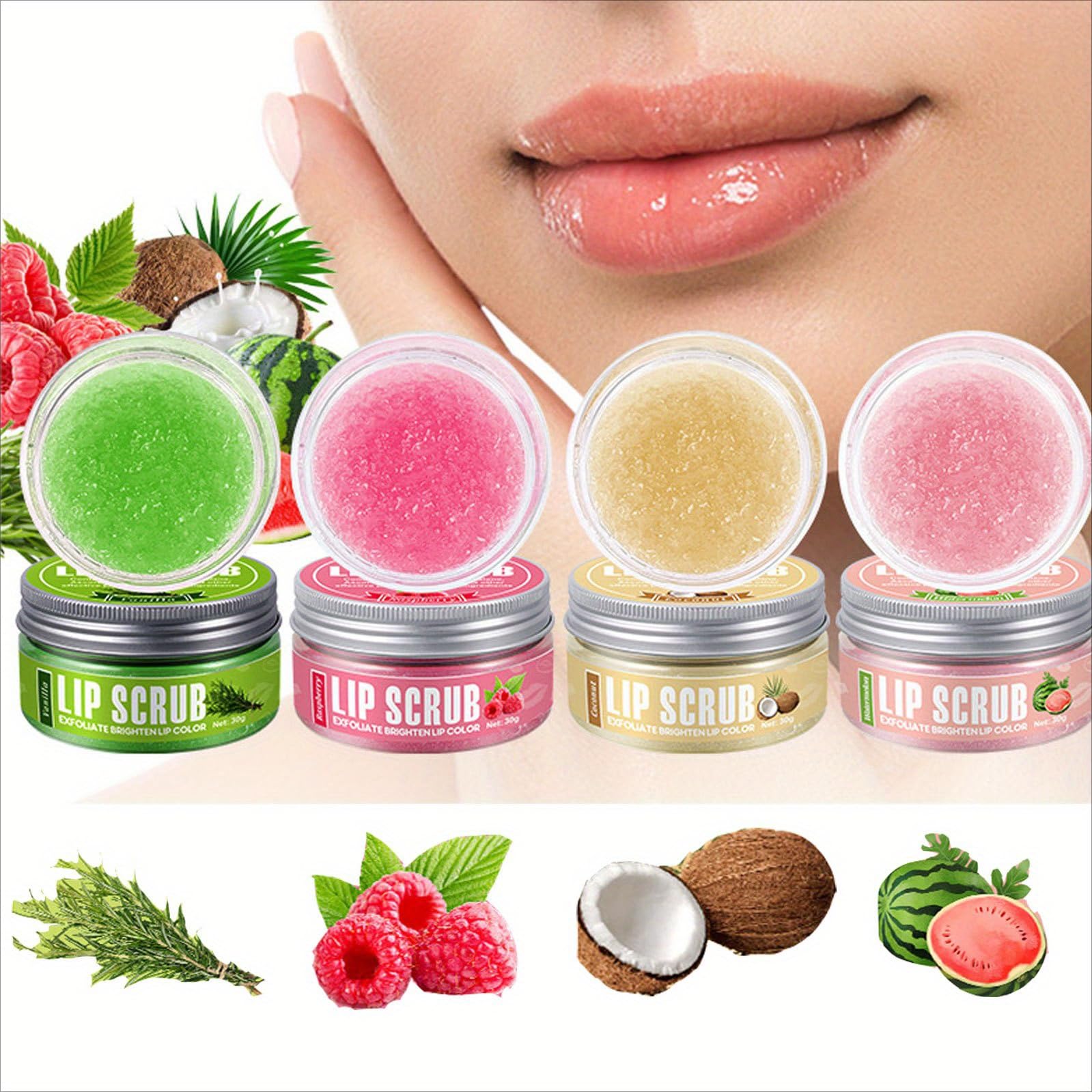 4 Color Fruity Lip Scrub - Exfoliator Moisturizer Lip Sugar Scrub, Natural Lip Sugar Scrub for Women, Even Skin Tone, Lip Exfoliator Scrub for All Skin Types