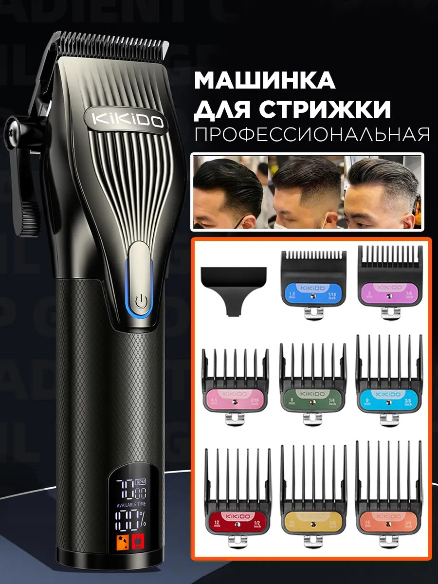 Машинка для стрижки оснащена специальными насадками 1.5/3/4.5/6/9/12/16/19 мм, которые позволяют выбрать нужную длину стрижки, что особенно удобно для создания разных стилей и причесок. Кроме того, она позволяет производить стрижку не только на голове, но и на других участках тела, таких как борода или усы, виски, окантовки. подходит для бритья в области подмышек.