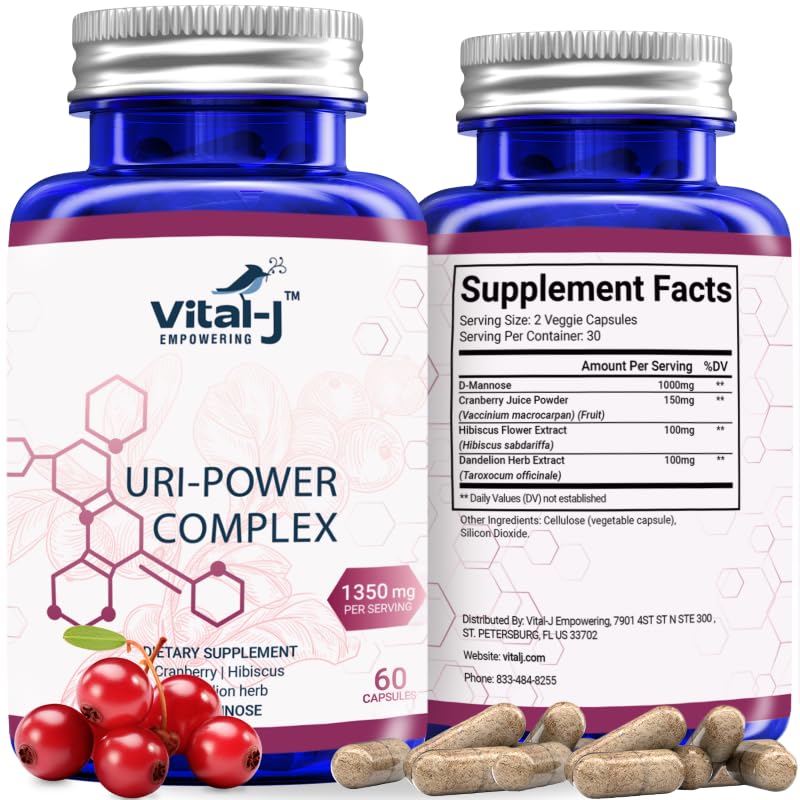 4-IN-1 URI POWER COMPLEX 1350mg - 60 day - D Mannose Cranberry Hibiscus and Dandelion Herb - Naturally Cleanse the Bladder and Urinary Tract Specialized Approach for UTI Avoidance Pack of 2