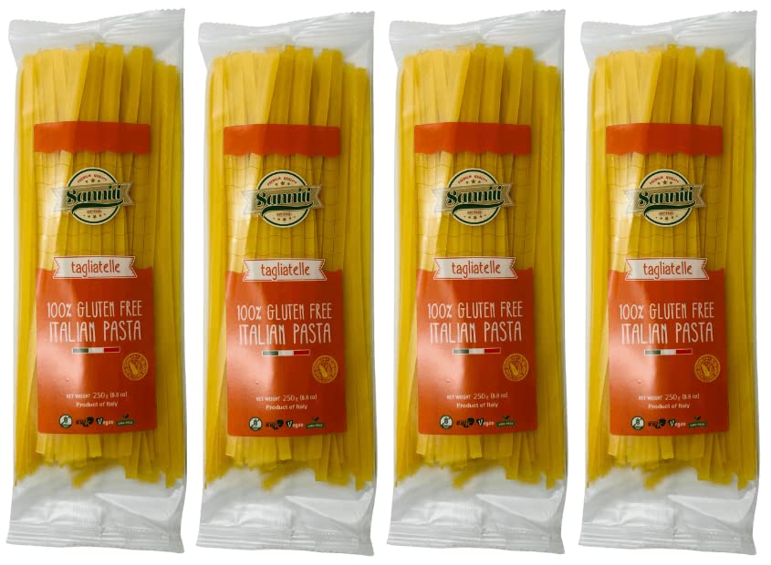 4 Pack, Gluten-Free TAGLIATELLE Sanniti Italian Gluten Free European-Kosher Vegan GMO-Free Tagliatelle Pasta Made with Corn and Rice imported from Italy, 8.8 oz (Pack of 4)