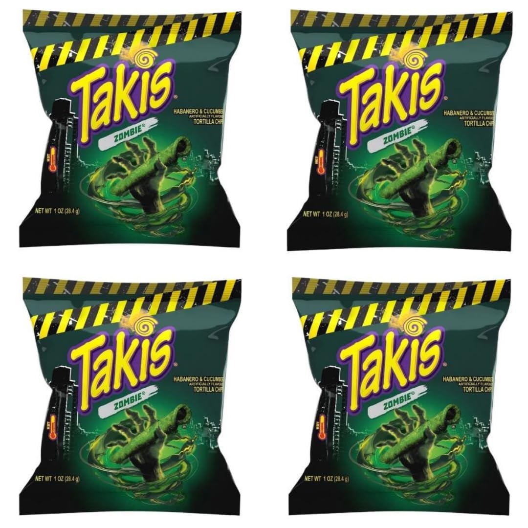 4-pack Takis Hero Pack 28g - Special Edition TAKIS ZOMBIE - Chips Heartforcards - Ingredients: Corn flour (with lime treatment), turmeric (color), skimmed milk, vegetable oil (palm and or soybean and or rapeseed oil), spices (salt, sugar, hydrolyzed corn protein, milk, maltodextrin, flavorings, whey (milk), tomato powder, onion powder, monosodium glutamate, gouda cheese (pasteurized milk, salt, cheese cultures, enzymes), dextrose, color E110, lactic acid, citric acid, calcium silicate, silicon dioxide, silicon dioxide, disodium dinosinate, disodium guanylate). Allergens: soy, milkHeartforcards Quality: Heartforcards shipping protection ensures that your Takis Zombie arrives at your home in perfect condition. We use special packaging materials to ensure that the Takis - Wapas Fuego are not damaged during transport. If anything goes wrong, you are covered by our shipping protection and we will do everything possible to resolve the problem and ensure your complete satisfaction. Gift Whether for a birthday, Christmas or simply as a special gift for that special someone, Takis Riffle chips are a gift that will spark enthusiasm. They have a unique taste and are of the highest quality, making them a valuable treasure for any Takis Riffle chips fan. Absolutely limited: Stock in Germany is absolutely limited, so buy while stocks last. Takis Riffle chips are, with their unique taste, an absolute must-have for all snack lovers. Contents: 4 x 28g of Zombie Special Edition Fine Takis. Lot de 4 paquets Takis Hero Pack de 28 g - Édition spéciale TAKIS ZOMBIE - Chips Heartforcards - Ingrédients : farine de maïs (avec traitement à la chaux), curcuma (colorant), lait écrémé, huile végétale (palme et ou huile de soja et ou de colza), épices (sel, sucre, protéines de maïs hydrolysées, lait, maltodextrine, arômes, lactosérum (lait), Poudre de tomate, poudre d'oignon, glutamate monosodique, fromage gouda (lait pasteurisé, sel, cultures de fromage, enzymes), dextrose, colorant E110, acide lactique, acide citrique, silicate de calcium, dioxyde de silicium, dioxyde de silicium, dinosinate disodique, guanylate disodique). Allergènes: soja, laitQualité Heartforcards : la protection d'expédition Heartforcards garantit que vos Takis Zombie arrivent chez vous en parfait état. Nous utilisons des matériaux d'emballage spéciaux pour nous assurer que les Takis - Wapas Fuego ne sont pas endommagés pendant le transport. Si quelque chose ne va pas mal, vous êtes couvert par notre protection d'expédition et nous ferons tout notre possible pour résoudre le problème et nous assurer que vous êtes entièrement satisfait. Cadeau Que ce soit pour un anniversaire, Noël ou tout simplement comme cadeau spécial pour une personne spéciale, les chips Takis Riffle sont un cadeau qui suscitera l'enthousiasme. Ils ont un goût unique et de la plus haute qualité, ce qui en fait un trésor précieux pour tout fan de puces Takis Riffle. Absolument limité : le stock en Allemagne est absolument limité, alors prenez jusqu'à épuisement de nos stocks. Les chips Takis Riffle sont avec leur goût unique à rien sur le marché allemand, un must absolu pour tous les amateurs de collations. Contenu : 4 x 28 g de takis fin Zombie édition spéciale.