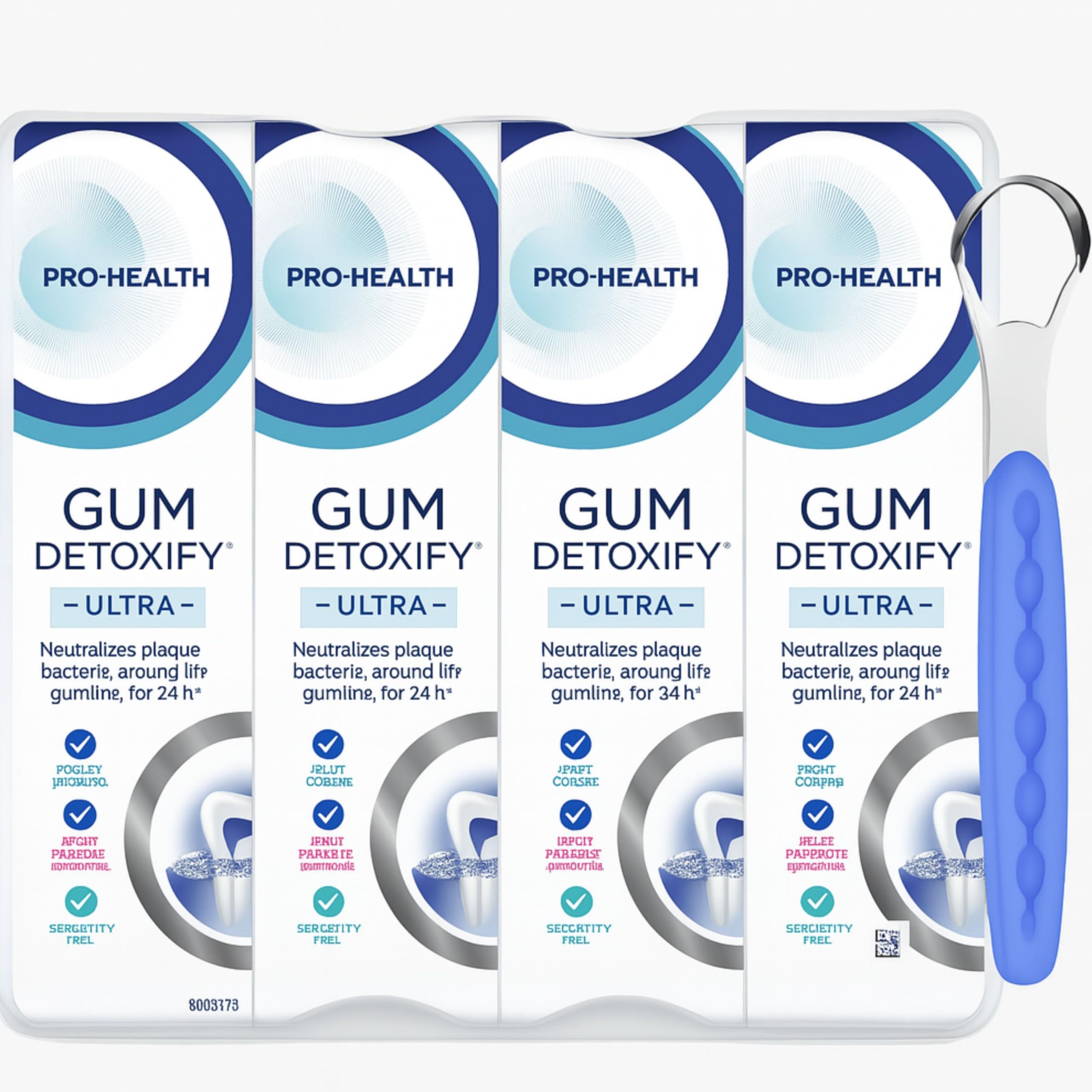 Achieve a healthier smile with our Gum Detox Whitening Toothpaste 4-Pack, designed for deep cleaning, advanced gum care, and long-lasting freshness. Formulated with activated foam technology, this toothpaste penetrates below the gumline to neutralize plaque bacteria, support gum health, and deliver gentle whitening with every use. Each tube contains a powerful blend of ingredients ideal for sensitive gums, receding gums, and anyone looking to prevent gingivitis, fight tartar buildup, and eliminate bad breath. The foaming action expands between teeth and gums, offering a deep clean feel similar to a professional dental cleaning. This value pack of 4 full-size tubes comes with a tongue cleaner (model color may vary) to help remove bacteria and improve overall oral hygiene. Whether you're building a daily dental routine or looking for a more complete mouth detox solution, this toothpaste set provides everything you need for a fresher, brighter smile.