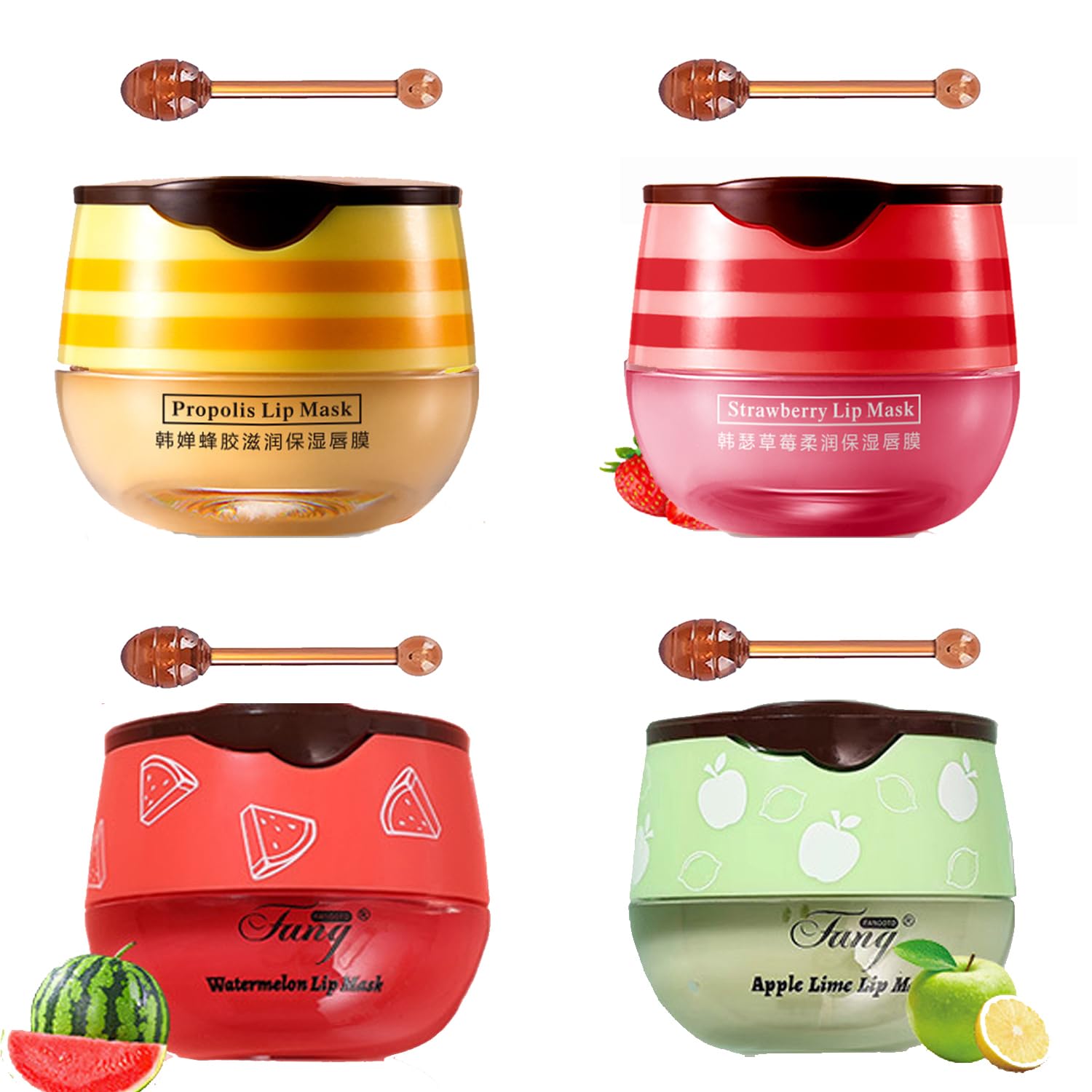 How to Use: use a small rod to apply thick lip mask to the lips, without washing. The next morning, wipe off the remaining lip mask with a cotton pad. Delicate and Small Honey Pot Design: the package is equipped with a small rod, which can be inserted into the jar after use to facilitate the next time use. The honey lip balm effectively reduce lip lines, prevention dry and cracked, and can be used before applying lipstick to moisturize. Day Night Use: the honey lip mask can clean dead skin. It can be used before bed and easy to fall off after getting up in the morning. Our lip balm honey pot contains propolis, strawberries, watermelons and apples extract, which can effectively moisturize your lips and replenish moisture to your lips.