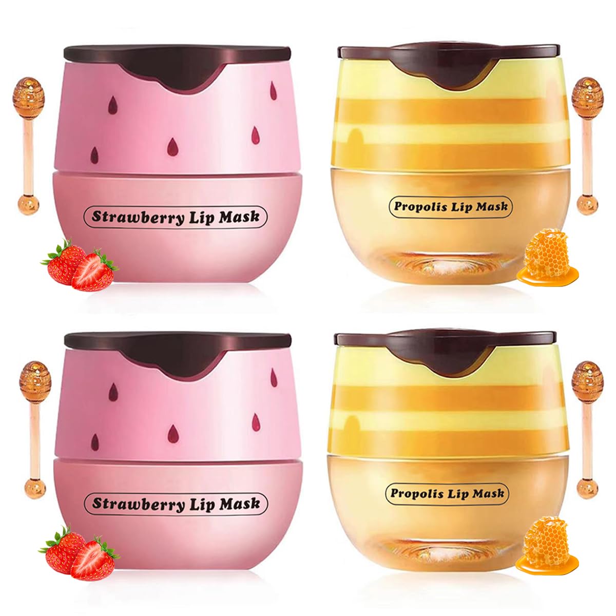 4 PCS Honey & Strawberry Lip Balm Sleeping Lip mask Propolis Moisturizing Lip Balm with Stick Hydrating Prevention Dry & Cracked Reduce lip Lines 4Pcs Strawberry & Honey Lip Balm