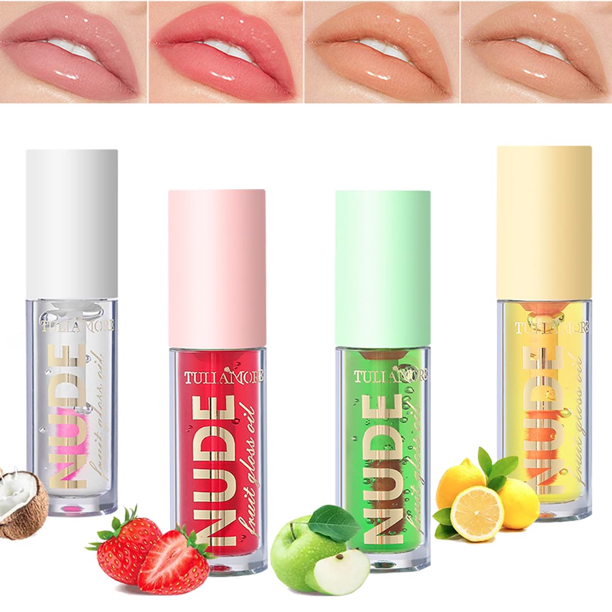 4 PCS Plumping Lip Oil Set Temperature Color Changing Lip Glow Oil Moisturizing Lip Gloss Lip Balm Lip Care Moisturizing Lip Gloss