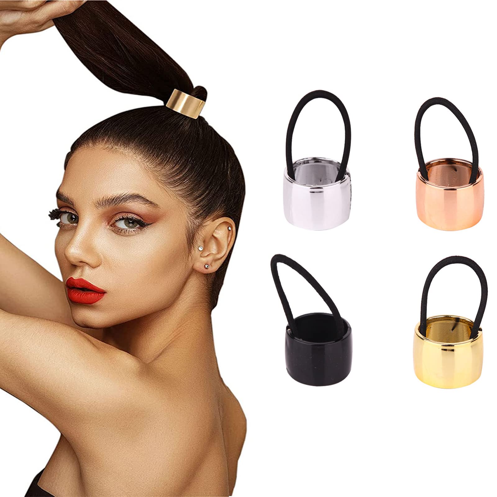 Features: DIY hairstyles with sisters: You can use a ponytail holder cuff to unlock more delicate hairstyles with your friends and families and share the fun of designing. Combine with other decorations: Hair ties with clips can be matched with other hair accessories to adorn your beauty, you can also wear hair ties on your wrist when not in use. Specifications: Material: elastic rope, and plastic Color: gold, silver, rose gold, and black Size: as the pictures shown Package includes: 4 x Ponytail holder hair cuffs Notes: For manual measurement, please allow slight errors in size. The color may exist a slight difference due to different screen displays. Children should apply under their parents' guidance.Wide Range of Applications: our metal ponytail holders can decorate various hairstyles, such as ponytails, buns, braids, curly hair, half updos, and more, showing your stylish personalities. Easy to carry: not only serve as a hair band but can also be applied to bracelets, is general size, lightweight, easy to carry and store, good costume accessory for your use. Fit for Multiple Occasions: these hair cuff ponytail holders are suitable for most occasions in life, such as dating, working, doing yoga, walking, performing, shopping, or attending activities and meetings, making you stand out in the crowd. What you get: 4 pieces of metal circle hair cuffs, each color has 1 piece, enough quantity for your use, and replacement. Reliable for a Long Time Use: these hair cuffs are made of elastic rope and plastics, light in weight and sturdy in quality, can serve you for a relatively long time, and you can use and reuse them with confidence.Best Sellers Rank: See Top 100 in Beauty & Personal Care. Hair Type: Curly. Brand: Zxleaus. Item Form: Scrunchie. Material: Silver, Plastic, Metal. Color: Black,Rose Gold,Silver. : B0C4D8LK3F. Manufacturer: zxleaus. Package Dimensions: 0.1 x 0.1 x 0.1 inches; 0.16 Ounces.