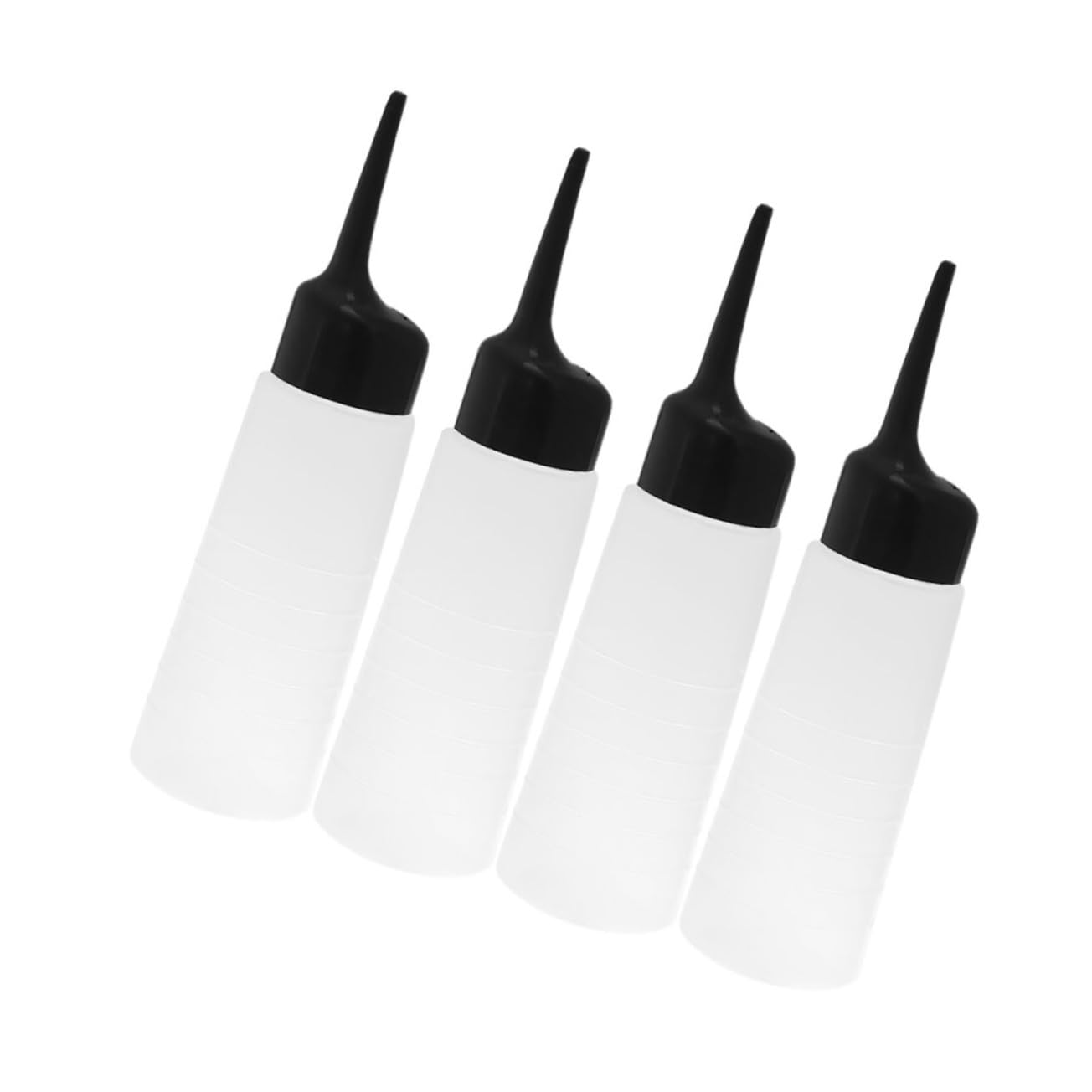 4 pièces Bouteilles Applicatrices pour Teinture Cheveux avec Embout Incliné Flacons Transparents Rechargeables pour Shampooing Huile et Coloration Distribution Précise et Usage