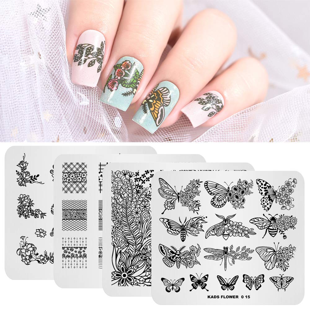 4 Stücke Nail art Stamping Platten Bild Vorlage Schablonen Maniküre Blume Schmetterling Plaid Multi-Muster Design Stamping Bild Nail art Schablone Werkzeuge 29-2