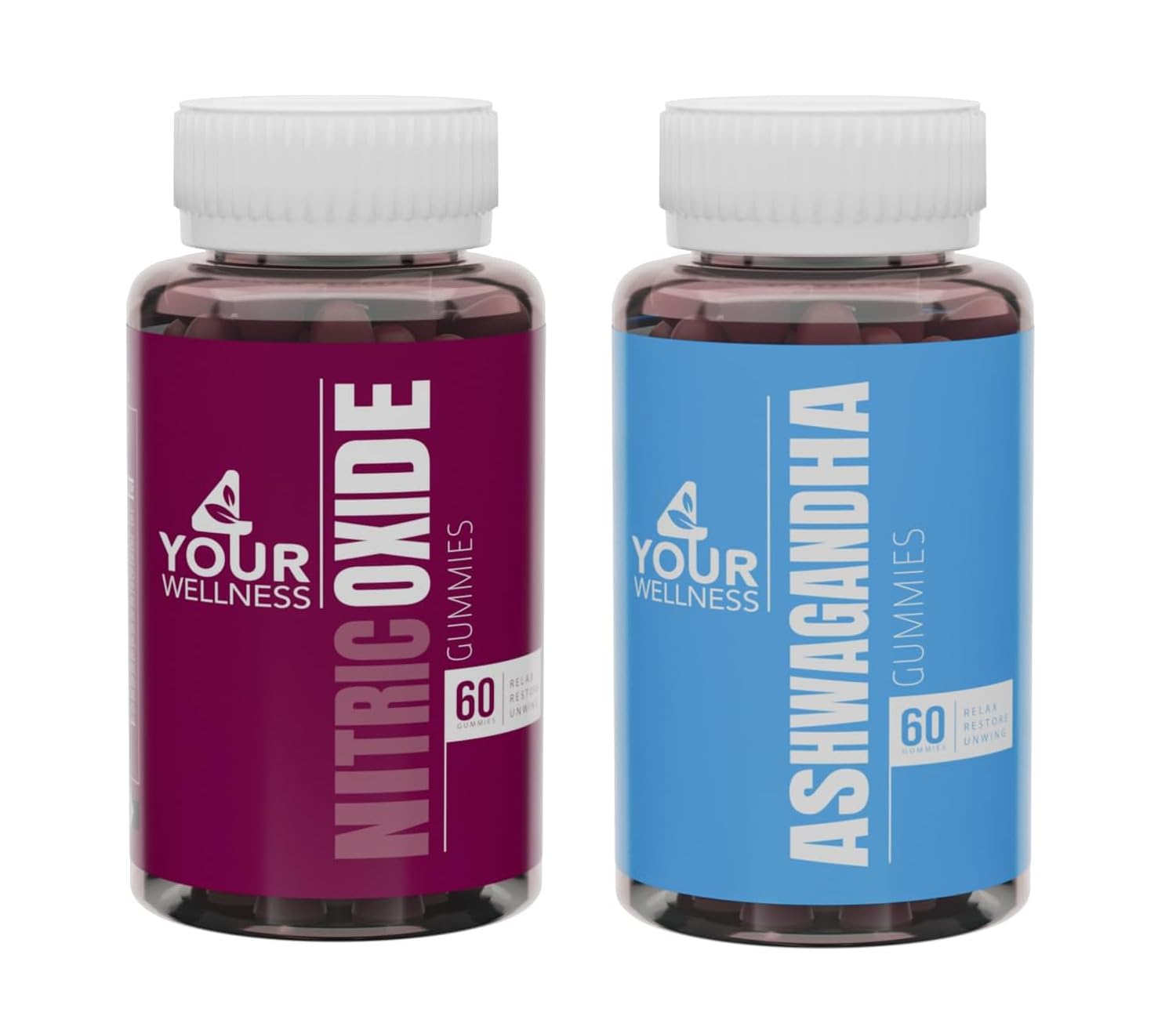 4 Your Wellness 4YWN Nitric Oxide and Ashwagandha Gummies Supplement Bundle Boosting Energy and Restoration Non-GMO Gluten-Free Gelatin Free & Kosher | for Daily Focus Boost