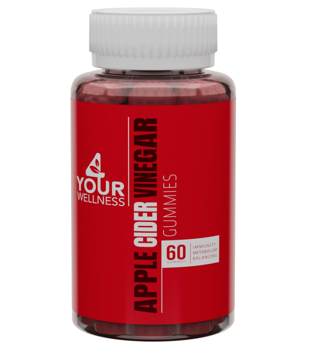 4 Your Wellness Apple Cider Vinegar Gummies 1000mg All Natural Kosher Gelatin-Free Gluten-Free Vegan Non-GMO (60 Count (Pack of 1))