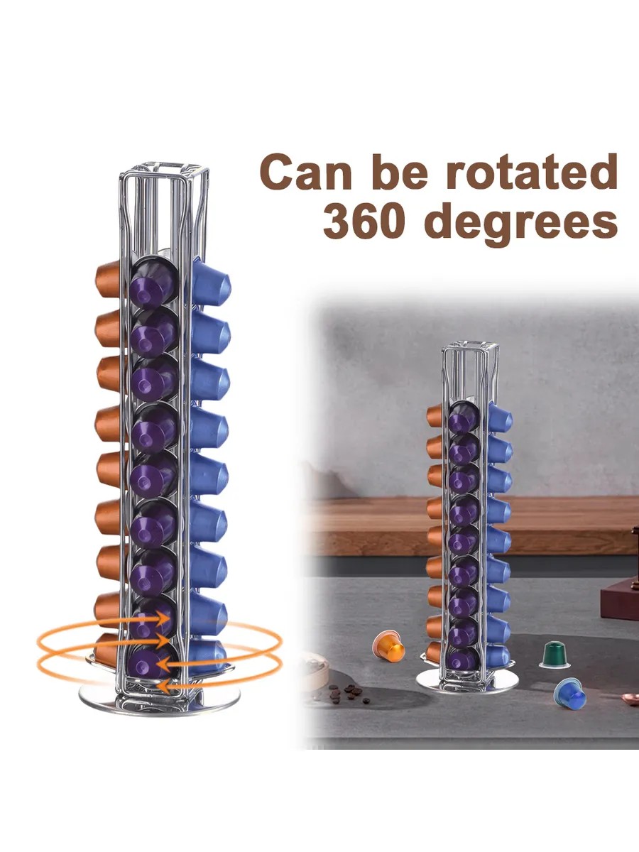 40 pcs Silver Coffee Capsule Holder, Revolving Capsule Storage Rack, for Coffee Bar and Kitchen.