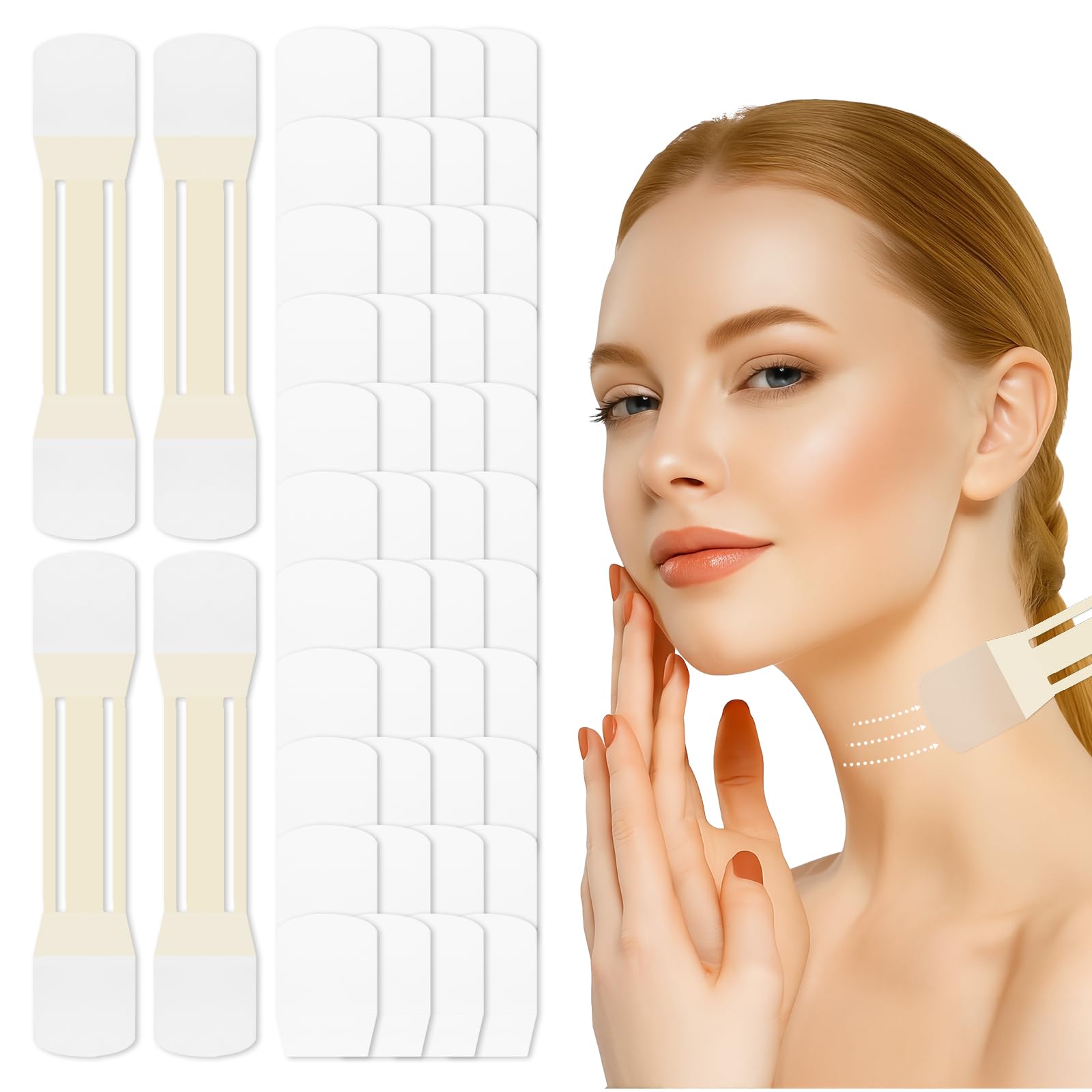 48-PIECE INVISIBLE NECK LIFT TAPE SET Professional-grade solution for instant neck and face contouring WHAT'S INCLUDED: 4 high-elastic pull strips 40 replacement skin-toned patches Total 48 pieces for extended use KEY BENEFITS: Instant Lifting Effect - Visibly smooths neck lines and improves skin appearance Comfortable Breathable - Ultra-thin material moves naturally with your skin Easy Application - Simple peel-and-stick design with adjustable tension Discreet Wear - Skin-colored patches blend seamlessly with your complexion