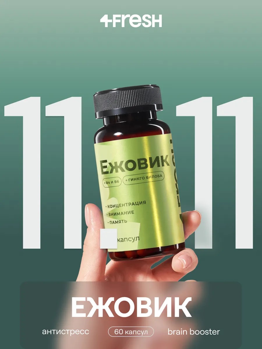 Благодаря профессиональной рецептуре, ежовик помогает бороться с депрессией и тревогой. Ежевик также называют природным ноотропом. Его можно употреблять в рамках микродозинга для достижения максимального эффекта. Натуральный состав без диоксида титана подчеркивает безопасность средства. Дополнен холином и гинкго билоба, что повышает устойчивость организма к гипоксии и улучшению кровообращения.