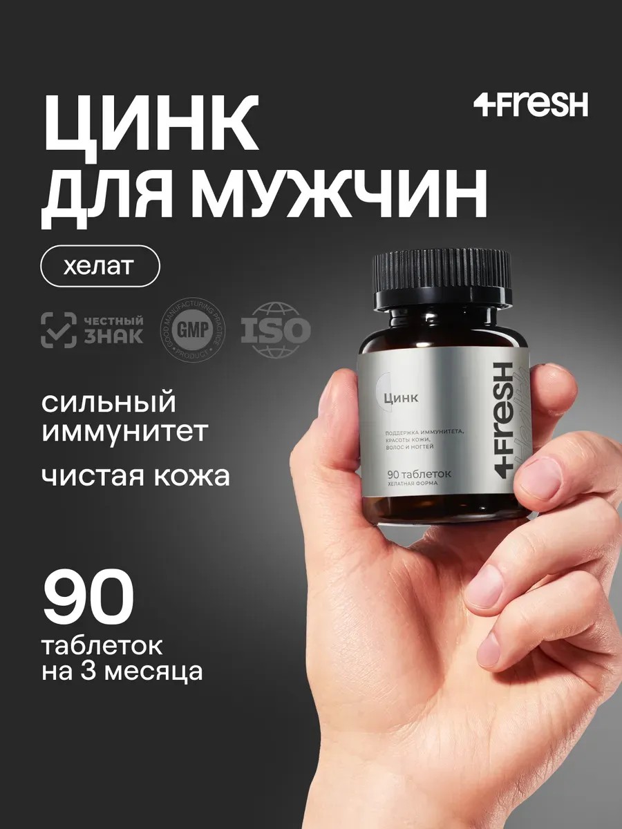4fresh Цинк для мужчин и женщин, хелат, 90шт