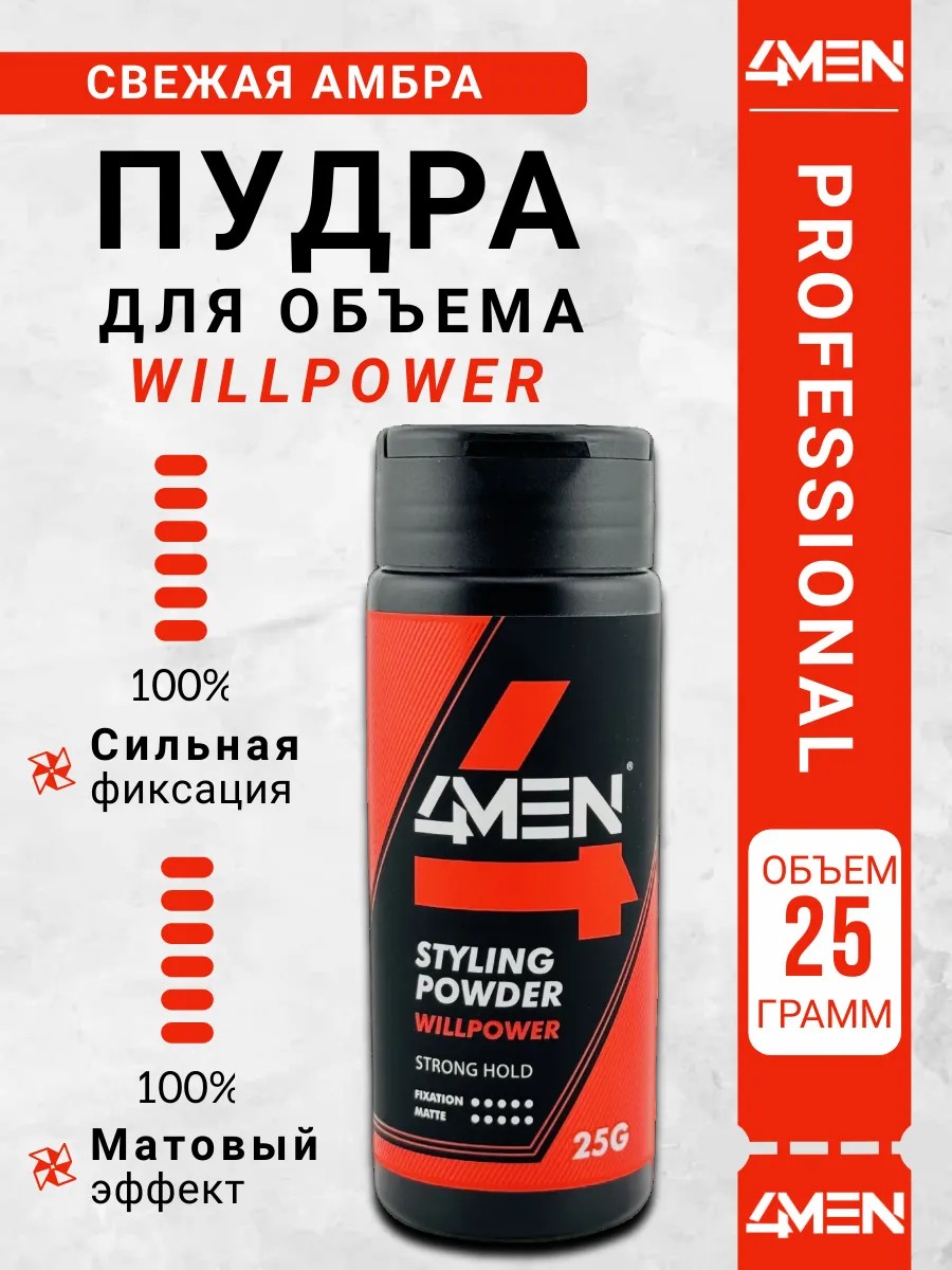 Пудра для волос с сильной фиксацией 4MEN WILLPOWER создана специально для мужчин, стремящихся создать стильную укладку без блеска, которые ценят стиль и уверенность в себе.