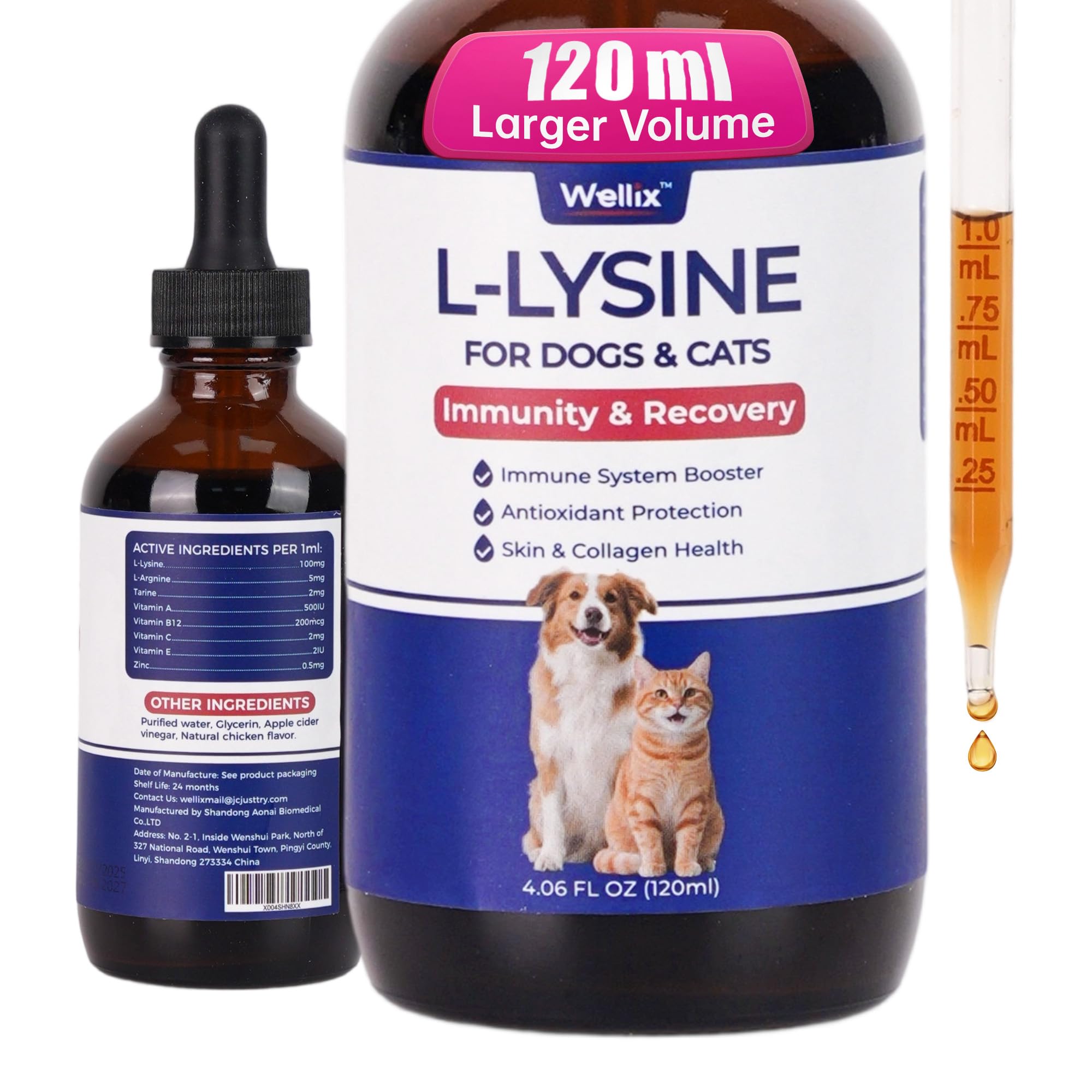 4oz Larger Volume Liquid L-Lysine Drops for Cats&Dogs with Cat & Dog Taurine - Immune Support&Respiratory Support - Sneezing Runny Nose Eye Care Allergy Relief - Chicken Flavor