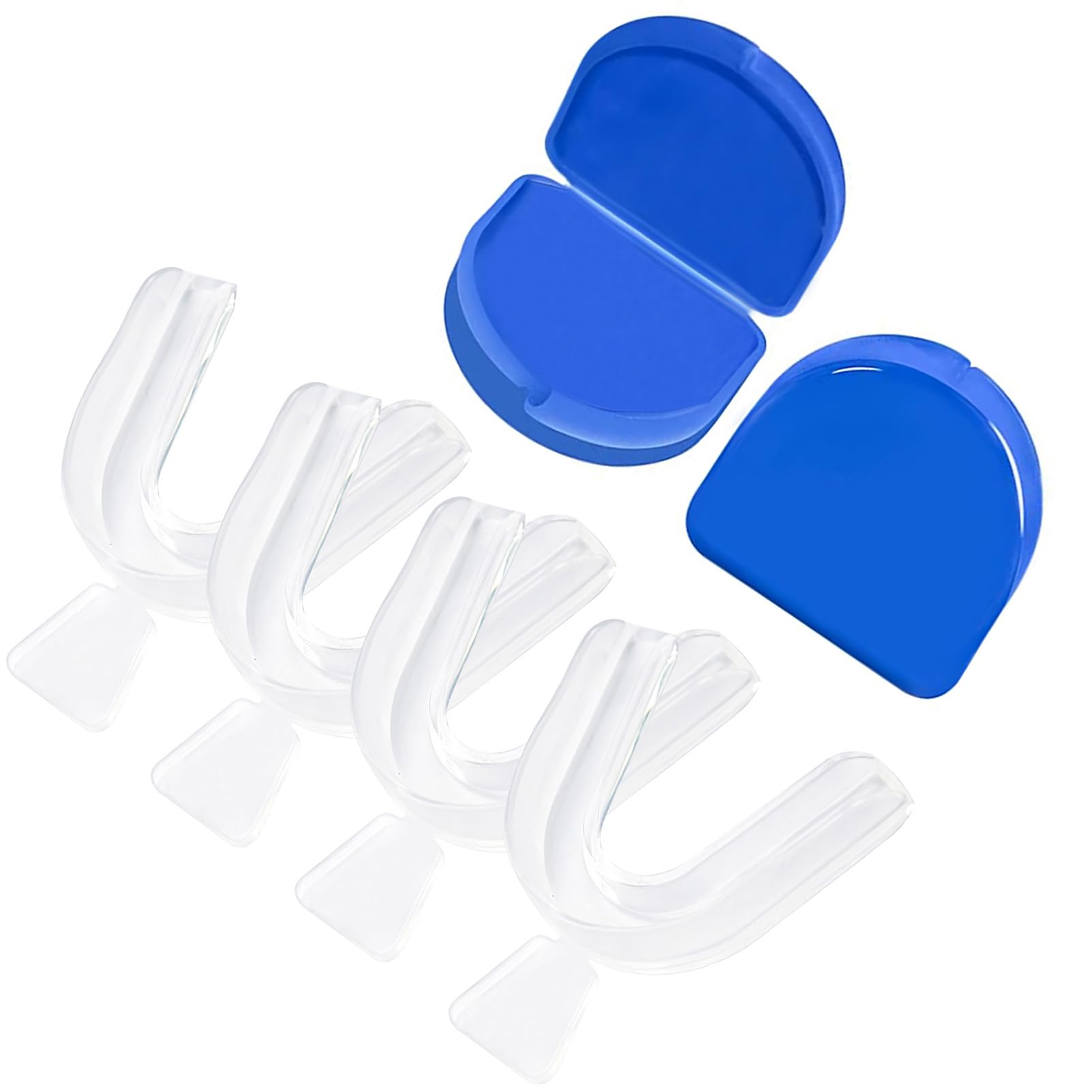 For Teeth Whitening: Concomitant use with whitening gel (not included). Smear the gel evenly inside the tray, make it touch the outer tooth surface. Appropriate dosage of whitening gel is 0.5-1mm thickness. Please dry the inside of the denture base with soft paper before using gel, so that the coating can be evenly spread. Please Note: 1, Inaccuracy of water temperature and soaking time will affect the trays' molding, improper operation will affect the molding effect, so pls read the use manual carefully before use them. 2, There is a slight error in artificial measuring. 3, Do not use it if you have gum disease, dentures or loose broken teeth, or if it makes you feel uncomfortable. 4, It does not absorb shocking, so we do not recommend use as athletic mouth guard. For Good Usage: 1, The mouth trays come with two travel cases for storage. 3, Please clean the tray before and after each use, keep dry after using for storing. 4, We provide 90 days for guarantee. How To Use: 1, Soaked in 75-80 C hot water about 10-12s 2, take it out when you see the tray's edge is wrinkled, it will be soft at that time 3, put the tray on your dental bed, press down the bonding surface of tray and teeth with your fingers about 20-30s, to mould the perfect fit for your teeth. If the tray's shape is not made well, you can repeat the process for the second moulding. Including 4pcs Moldable Teeth Whitening Trays (size is 2.55"x1.97"x0.5") 2pcs Tooth Boxes, the BPA-free material is healthy and safe for utilization. The size is more suitable for whitening teeth for adult, helps you whitening tooth comfortably and effectively. Our teeth whitening trays kits have a good thermoplasticity, satisfy for your personalized fit. They are also reusable, if it is not formed properly for first moulding, these trays can be re-moulded in 75-80 ? hot water.