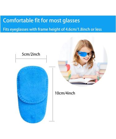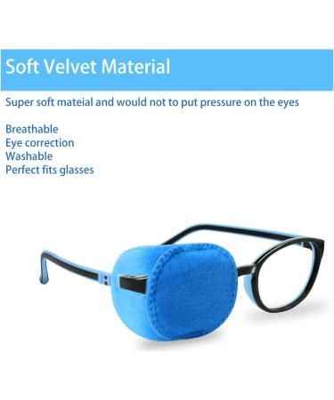 5.PERFECT FITS LEFT&RIGHT: Blue soft eye patches is about 10*5cm / 4 * 2inches in size, can be applied on the left or the right of glasses, and fits perfectly and stay tightly. It recommends using it on glasses with a frame height lower than or equal to 1.8inch. 4.EASY TO USE: You just need to slide the eye patch over the eyeglass bracket and wrap it around to cover the lens. 3.SUPER SOFT VELVET MATERIAL: Blue eye patches are made of velvet and cotton, soft, comfortable, skin-friendly, and durable, it would not to put pressure on the eyes and won't scratch your glasses. 2.EFFECTIVE PATCHING TREATMENT: Our soft kids/adults eye patches offer full coverage without leakage, which training the lazy eye to work properly, so that vision can develop correctly. 1.OVER-COVER DESIGN: Eye patch needs to be put over the good eye.Non-adhesive, no irritation to the eye, breathable.