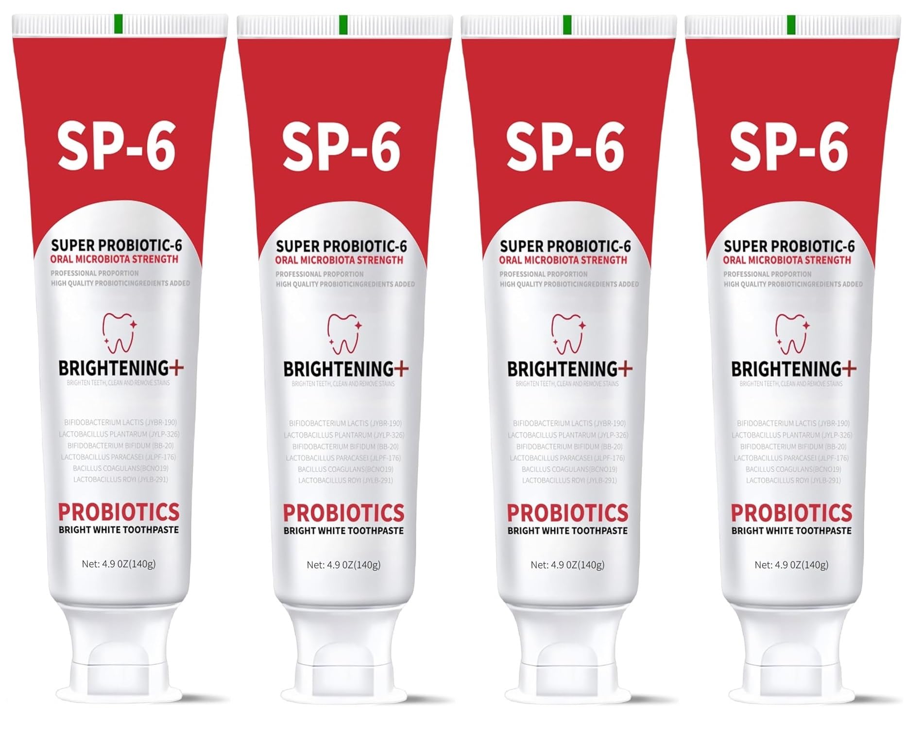 4PCS SP-6 Probiotic Whitening Toothpaste Enhanced Formula with 6 Probiotics for Teeth Whitening and Gum Health Enamel-Safe Fluoride-Free Fresh Mint Flavor Ultra whitening and Fresh Breath