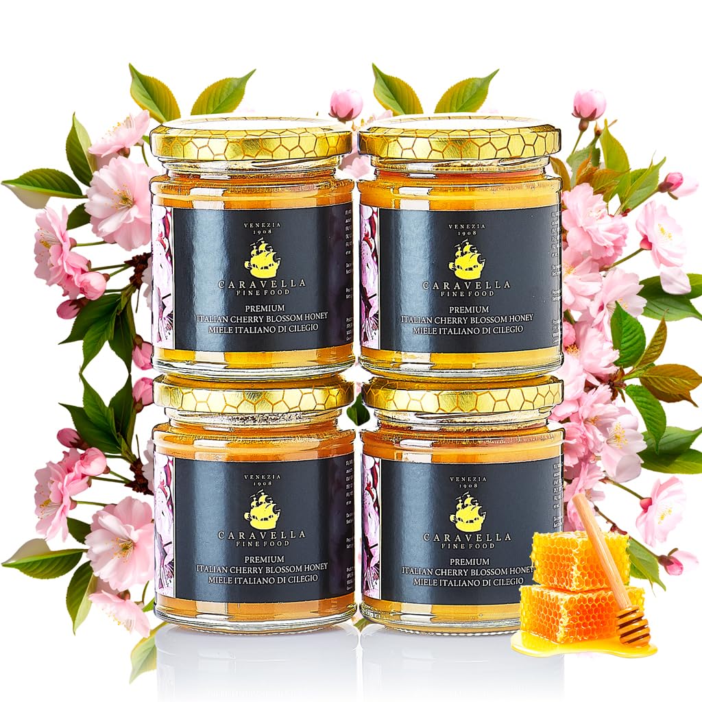 Experience the rare elegance of Caravella Fine Food Cherry Blossom Honey (Miele di Ciliegio) – a luxurious spring honey, harvested from blossoming Italian cherry orchards. This honey, naturally raw and unpasteurized, has a creamy, soft texture and a light amber hue with delicate golden-pink reflections. The mild, floral flavor has subtle notes of ripe cherry, vanilla and almond blossom, making it an excellent match with tea, fresh cheeses, yoghurt and luxury pastries. Rich in natural enzymes, antioxidants and prebiotics, it also contains trace vitamins (B1, B2, B6, C) and essential minerals such as calcium, potassium and magnesium – to support healthy digestion, immunity and a natural glow. Whether you are looking for a nutritious daily ritual, a unique ingredient for your recipes or a thoughtful gift, this honey offers both taste and well-being in every spoonful. Add it to your cart today and enjoy the floral sweetness of Italian spring. INGREDIENTS Raw cherry blossom honey4x Kersenbloesemhoning 250g Caravella Fine Food Italiaanse lentebloesem Puur Rauw Licht amberkleurig met fruitige, bloemige tonen Rijk aan antioxidanten en vitaminen Ideaal voor thee Kaas Ontbijt Ervaar de zeldzame elegantie van Caravella Fine Food Kersenbloesemhoning (Miele di Ciliegio) – een luxueuze lentehoning, geoogst uit bloeiende Italiaanse kersenboomgaarden. Deze honing, van nature rauw en ongepasteuriseerd, heeft een romige, zachte textuur en een licht amberkleurige tint met delicate goudroze reflecties. De milde, bloemige smaak heeft subtiele tonen van rijpe kers, vanille en amandelbloesem, waardoor het een uitstekende match is met thee, verse kazen, yoghurt en luxe gebak. Rijk aan natuurlijke enzymen, antioxidanten en prebiotica, bevat het ook sporenvitaminen (B1, B2, B6, C) en essentiële mineralen zoals calcium, kalium en magnesium – ter ondersteuning van een gezonde spijsvertering, immuniteit en een natuurlijke glans. Of je nu op zoek bent naar een voedzaam dagelijks ritueel, een uniek ingrediënt voor je recepten of een attent cadeau, deze honing biedt zowel smaak als welzijn in elke lepel. Voeg hem vandaag nog toe aan je winkelwagen en geniet van de bloemige zoetheid van de Italiaanse lente. INGREDIËNTEN Rauwe kersenbloesemhoning