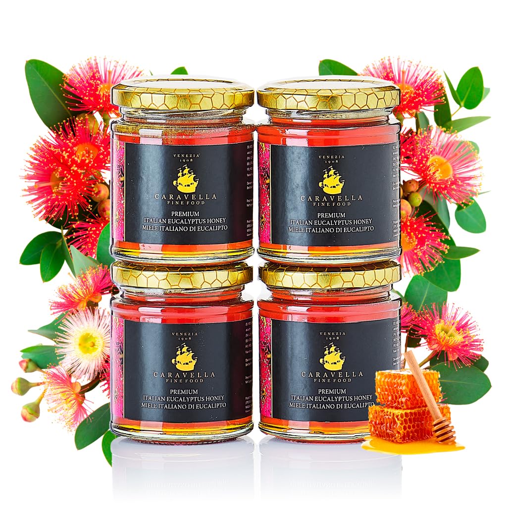 Caravella Fine Food Eucalyptus Honey is a powerful and aromatic treasure from the sun-drenched southern Italian countries. This raw and unpasteurized honey, produced from the nectar of eucalyptus blossoms, captures the essence of the plant's naturally soothing and aromatic properties. The complex flavor combines earthy, balsamic and spicy notes with a hint of natural sweetness and subtle menthol undertones. The result is a characteristic honey with a pleasantly persistent aftertaste – perfect for those looking for both taste and well-being. Whether used to sweeten herbal teas, soothe a sore throat or enhance your wellness routine, this honey is an essential pantry staple with character. Packaged in a glass jar with a reusable Caravella pouch, it makes a thoughtful gift for natural food lovers. Rich in natural enzymes, antioxidants and prebiotics, it also contains trace vitamins (B1, B2, B6, C) and essential minerals such as calcium, potassium and magnesium – to support healthy digestion, immunity and a natural glow. Whether you are looking for a nutritious daily ritual, a unique ingredient for your recipes or a thoughtful gift, this honey offers both taste and well-being in every spoonful. Add it to your cart today and enjoy the floral sweetness of Italian spring. INGREDIENTS Raw eucalyptus honey INSTRUCTIONS FOR USE Soothing and calming. Ideal for tea, breakfast, wellness, cough, skin, detox SAFETY WARNING Do not give to babies under 1 year of age See more4x Eucalyptushoning 250g Caravella Fine Food Krachtige balsamico-en houtachtige tonen Italiaans Rauw Rijk aan antioxidanten en Enzymen Verzachtend en kalmerend Ideaal voor Wellness Hoest Huid Detox Caravella Fine Food Eucalyptushoning is een krachtige en aromatische schat uit de zonovergoten Zuid-Italiaanse landen. Deze rauwe en ongepasteuriseerde honing, geproduceerd uit de nectar van eucalyptusbloesem, vangt de essentie van de van nature kalmerende en aromatische eigenschappen van de plant. De complexe smaak combineert aardse, balsemachtige en kruidige tonen met een vleugje natuurlijke zoetheid en subtiele mentholondertonen. Het resultaat is een karakteristieke honing met een aangenaam aanhoudende nasmaak – perfect voor wie op zoek is naar zowel smaak als welzijn. Of het nu gebruikt wordt om kruidenthee te zoeten, een zere keel te verzachten of je welzijnsroutine te verbeteren, deze honing is een onmisbaar element in je voorraadkast met karakter. Verpakt in een glazen pot met een herbruikbaar Caravella-zakje, is het een attent cadeau voor liefhebbers van natuurlijke voeding. Rijk aan natuurlijke enzymen, antioxidanten en prebiotica, bevat het ook sporenvitaminen (B1, B2, B6, C) en essentiële mineralen zoals calcium, kalium en magnesium – ter ondersteuning van een gezonde spijsvertering, immuniteit en een natuurlijke glans. Of je nu op zoek bent naar een voedzaam dagelijks ritueel, een uniek ingrediënt voor je recepten of een attent cadeau, deze honing biedt zowel smaak als welzijn in elke lepel. Voeg hem vandaag nog toe aan je winkelwagen en geniet van de bloemige zoetheid van de Italiaanse lente. INGREDIËNTEN Rauwe eucalyptushoning GEBRUIKSAANWIJZING Verzachtend en kalmerend. Ideaal voor thee, ontbijt, wellness, hoest, huid, detox VEILIGHEIDSWAARSCHUWING Niet geven aan baby's jonger dan 1 jaar Meer bekijken