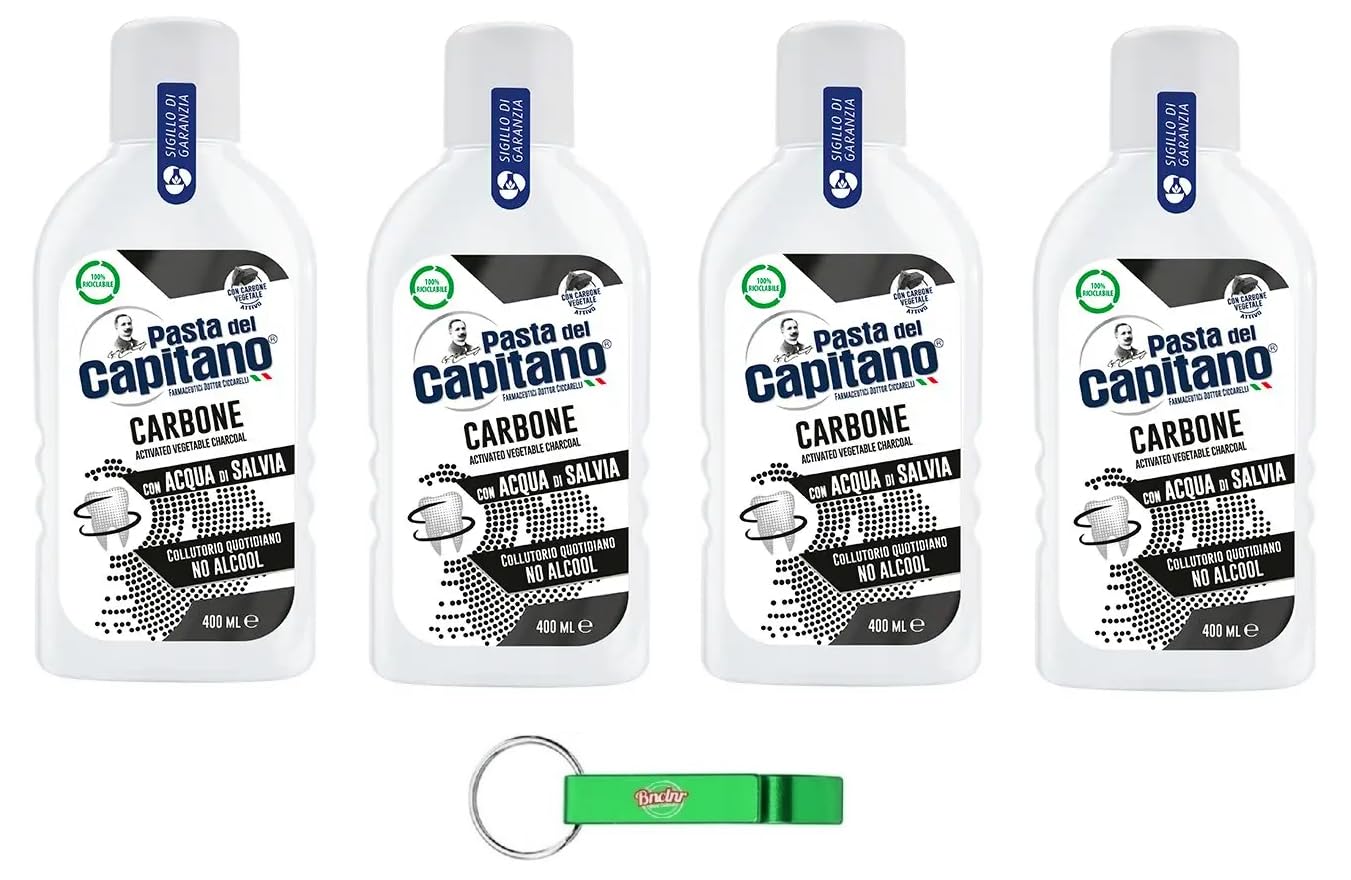 manufacturer Pasta del Capitano - 100 years quality pasta del Capitano has always been offering reliable.The mouthwash is ideal for daily use and completes the oral hygiene of the whole family.Its formula contains activated carbon water, which helps to reduce stains on the tooth enamel, and sage water that reduces the tooth sensitivity.Pasta del Capitano Carbone mouthwater 400 ml ideal for maintaining the natural white level of the teeth.Pasta del Capitano has always offered reliable, effective and scientifically certified oral hygiene products.Beni Culinari Free keychain.