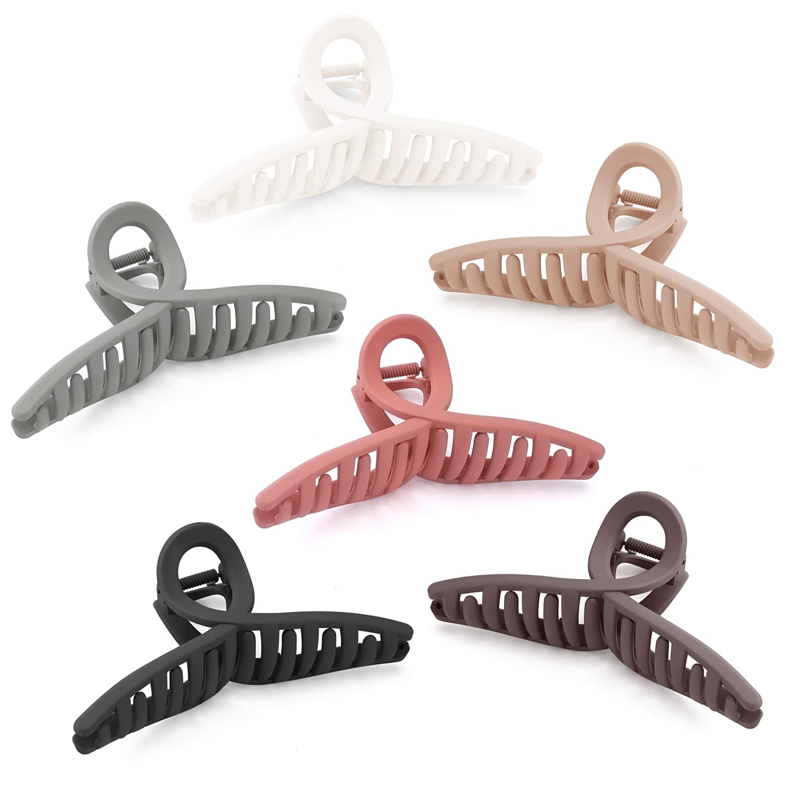 ?Wide Application?These hair clips are perfect for any hair length, texture, or color.These stylish and fashion-forward hair claws come in a range of colors and make it easy to style your hair and create any look. And with 6 large hair claws in each pack, you can stock up for less and ensure you’re always ready to take on any style. ?Soft-touch?These large matte hair claw clips are elegant and sturdy. Soft claws finish ensures maximum comfort, hold all your hair up nicely in various styles. The soft-touch material offers a comfortable grip that won’t pull or snag your hair, making them perfect for everyday use. ?Lightweight Enough? These hair claw clips are made of high quality with matte coating, which is durable for long-lasting use and do not feel flimsy, feature a lightweight design, making them perfect for all day comfort without weighing down your hair. ?Strong Hold?Crafted from high-quality materials, these large hair claws offer a strong and secure hold that won’t let your hair slip. There are some small little claws on the inside of the claw clips that help you to grab your hair better, reduce the trouble of clip falling. ?Extra Large Size?These large claw clips for thick hair are approx 5.1 inch, 6 colors in total, which offer a generous size to provide extra hold and keep your hair securely in place. These big hair claw clips are the perfect length for any fine, thick, or curly hair type .