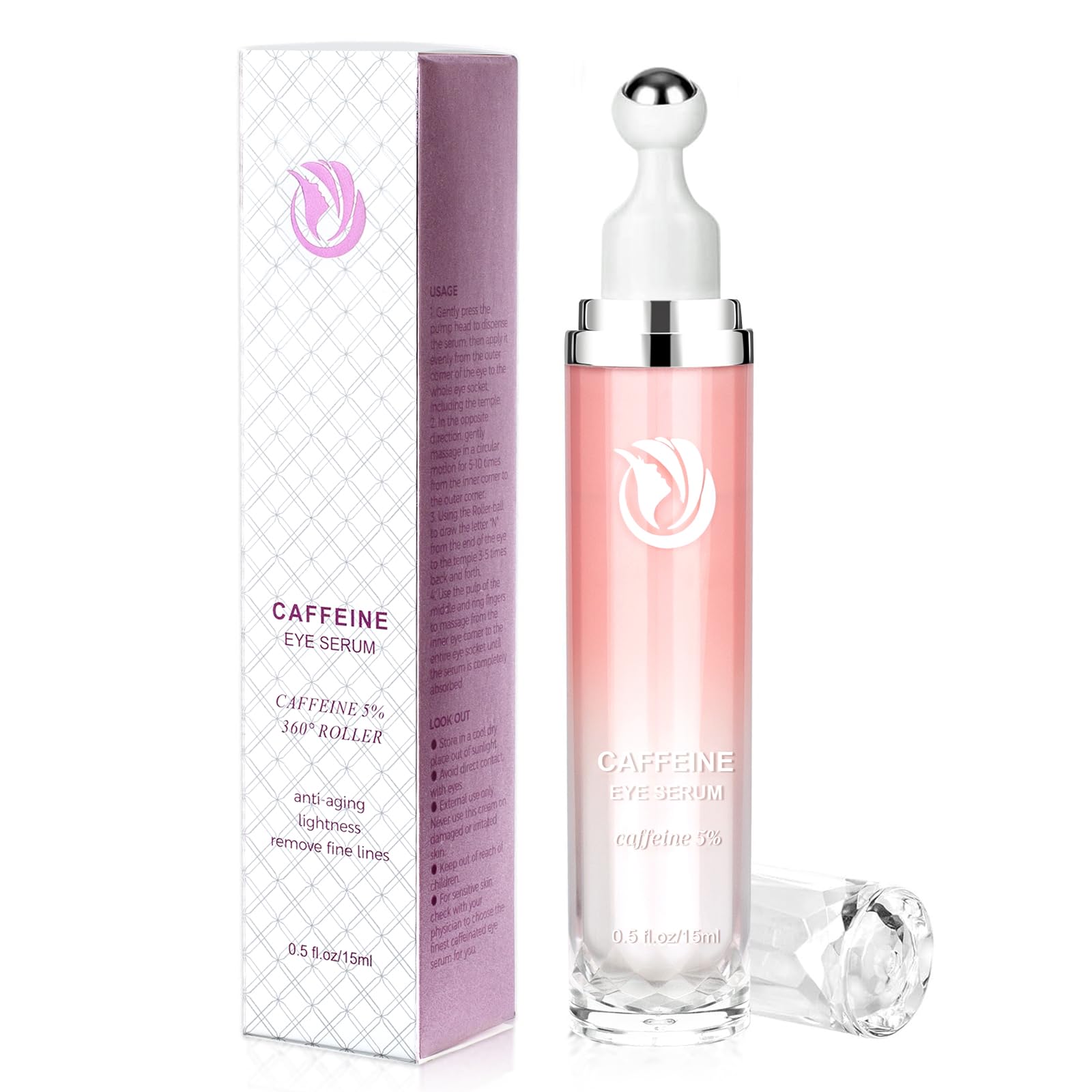 Powerful Hydrating Powerhouse: With hyaluronic acid, niacinamide, acetyl hexapeptide, Camellia Sinensis, and glutathione, this 5 caffeine eye serum will leave your eye area feeling soft, smooth, and nourished, experiencing difference of a hydrating eye cream that truly delivers. Using the unique cooling massage head will deeply moisturize and plump up the eye area, targeting fine lines, wrinkles, and dark circles. Keep your eye skin hydrated throughout the day without drying out!. 360 Massage Ball Design:With unique 360 cooling stainless steel roller-ball applicator, which makes it easy to target specific areas of concern, such as crow's feet or under-eye bags. Simply roll the ball over the skin and feel the gentle pressure as it works to smooth and rejuvenate the eye area.which works great when used in combination with our caffeine eye serum, providing a gentle, massaging sensation that efficiently relieves fatigue and tension. Strong Permeability and Good Absorption: This Caffeine Eye Serum is lightweight and non-greasy, allowing for effortless absorption. In just a few minutes, this amazing eye cream will sink into your skin and notice how comfortable and hydrating it feels. With daily use, you'll experience a boost in circulation and an improvement in skin tone and texture. Bid a farewell to dry, crepey skin and say hello to a younger, more radiant you!. Gentle Formulation: This caffeine eye cream is formulated with a gentle ingredients, which is gentle on sensitive skin and suitable for all skin types from dry to oily. With daily use, you'll see a significant improvement in the appearance of fine lines, wrinkles, and dark circles, and skin will be smoother, softer, and more youthful-looking than ever before. It's an easy addition to your daily skincare routine that will give you the results you've been looking for!. Say Goodbye to Tired-looking Eyes: This eye cream is formulated with 5 caffeine, which works wonders to reduce puffiness, and fine lines, dark circles caused by lack of sleep or staying up late. Say goodbye to tired-looking eyes and hello to a younger, brighter you! Don't wait another moment! Add this caffeine eye cream with 360 massage ball to your beauty routine today and experience the trans-formative effects it has on your eye area.