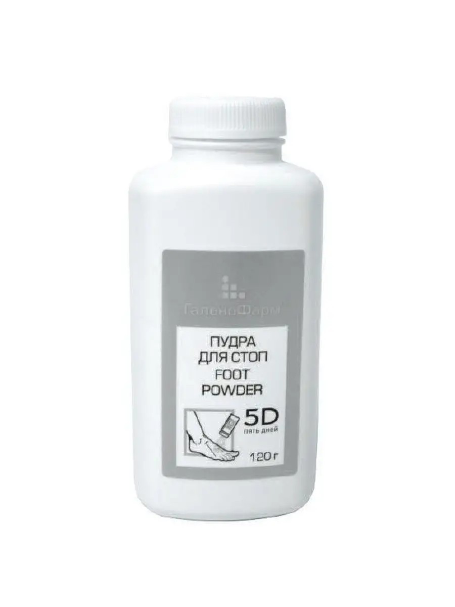 Легкая, адсорбирующая Пудра для стоп «5D ПЯТЬ ДНЕЙ» с дезинфицирующими и дезодорирующими ингредиентами помогает содержать кожу стоп сухой. Предотвращает появление запаха и грибковых инфекций. Профилактическое средство от натираний. Подходит для ежедневного ухода.
