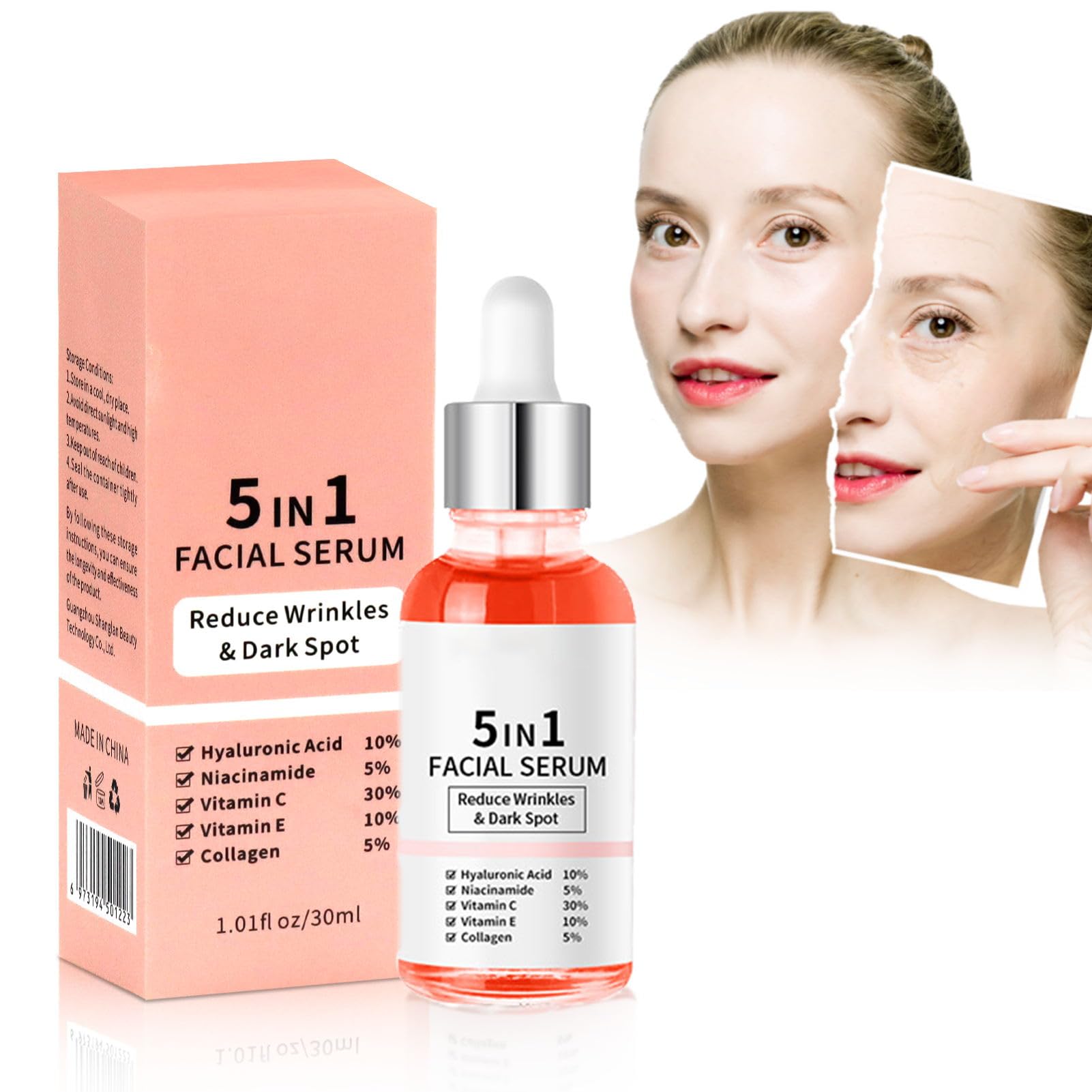 5 In 1 facial serum, 5 in 1 facial serum, 30 ml, facial serum with hyaluronic acid 10%+niacinamide 5%+vitamin C 30%+vitamin E 10%+collages 5%, anti -aging serum, brightening serum Warnings 1 ?Suitable for all skin types?: The essence is suitable for all skin types, whether dry skin, greasy skin, pale skin or ripe skin.Test it before use (every situation is different, it is recommended to apply it locally behind the ears to test it).[Application]: Put a few drops on the face in the morning and in the evening before the lotion and cream, apply a reasonable amount to the face and tap the skin gently until it is pulled in.?5-in-1 face essence?: Hyaluronic acid 10%+niacinamide 5%+vitamin C 30%+vitamin E 10%+collages 5%.5-in-1 effect, lightening, removal of freckles, anti-folds, repair and rejuvenation of the skin.?Effectiveness?: 5-in-1 face essence can reduce wrinkles and dark spots.Improve mattness and brighten the skin tone.Moisturizing effect, the skin donates moisture.[Capacity]: 1 bottle has a capacity of 30 ml. It is recommended to place the storage location in a cool, ventilated and dark place.Do not place it in a place that is exposed to direct light or high temperatures. 5 in 1 Gesichtsserum,5 in 1 Facial Serum,30 ml,Gesichtsserum mit Hyaluronic Acid 10%+Niacinamide 5%+Vitamin C 30%+Vitamin E 10%+Collagen 5%,Anti Aging Serum,Brightening Serum WARNHINWEISE 1?Für alle Hauttypen geeignet?: Die Essenz ist für alle Hauttypen geeignet, egal ob trockene Haut, fettige Haut, fahle Haut oder reife Haut. Testen Sie es vor dem Gebrauch (jede Situation ist anders, es wird empfohlen, es vor dem Gebrauch örtlich hinter den Ohren aufzutragen, um es zu testen). [Anwendung]: Morgens und abends vor der Lotion und Creme ein paar Tropfen auf das Gesicht geben, eine angemessene Menge auf das Gesicht auftragen und die Haut sanft einklopfen, bis sie eingezogen ist. ?5-in-1-Gesichtsessenz?: Hyaluronic Acid 10%+Niacinamide 5%+Vitamin C 30%+Vitamin E 10%+Collagen 5%. 5-in-1-Effekt, Aufhellung, Entfernung von Sommersprossen, Anti-Falten, Reparatur und Verjüngung der Haut. ?Wirksamkeit?: 5-in-1-Gesichtsessenz kann Falten und dunkle Flecken reduzieren. Verbessern Sie die Mattheit und erhellen Sie den Hautton. Feuchtigkeitsspendende Wirkung, spendet der Haut Feuchtigkeit. [Kapazität]: 1 Flasche hat ein Fassungsvermögen von 30 ml. Es wird empfohlen, den Lagerort an einem kühlen, belüfteten und dunklen Ort zu platzieren. Stellen Sie ihn nicht an einem Ort auf, der direktem Licht oder hohen Temperaturen ausgesetzt ist.5 in 1 Gesichtsserum,5 in 1 Facial Serum,30 ml,Gesichtsserum mit Hyaluronic Acid 10%+Niacinamide 5%+Vitamin C 30%+Vitamin E 10%+Collagen 5%,Anti Aging Serum,Brightening Serum Style2