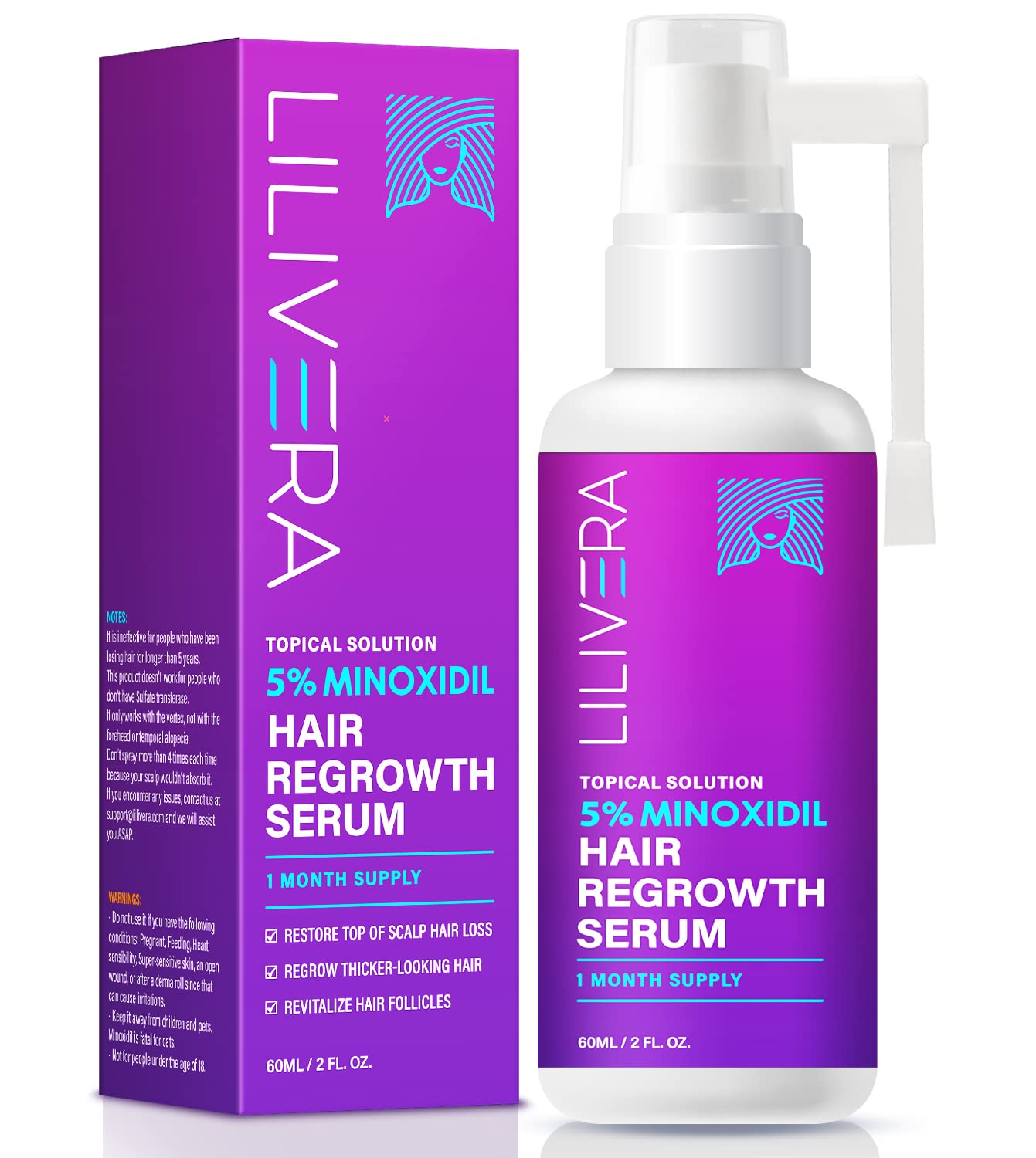 Thicker & Fuller Hair: The 5% Minoxidil for women hair growth oil formula strengthens thinning and weak hair resulting in noticeably thicker, fuller, and healthier hair. Prevent Hair Loss: Lilivera Minoxidil 5% Biotin Oil for Hair Growth Topical Spray helps keep hair regrowth for women, treat hair loss, restore dying hair follicles, and improve scalp health. Safe & Effective Formula: Our formula of 5% Minoxidil, Biotin, Retinol and Moroccan Nut Oil, work harmoniously together to create a fast-working minoxidil hair regrowth solution to boost hair follicle activity and hair protein production. Easy to Use: Our Lilivera 5% Minoxidil for Women Hair Growth Spray is convenient to use at home. Our product comes in an easy to use spray bottle specially designed to fit into your daily routine. After applying Minoxidil 5% hair serum , you can style your hair as usual. Promote Hair Growth: Our 5% Minoxidil Hair Growth for Women Serum is designed to revitalize, strengthen, protect, and stimulate hair follicles. 5% Minoxidil is the #1 Dermatologist Recommended ingredient for hair loss and is clinically proven effective for hair regrowth. You can achieve excellent results in 3-6 months of constant usage.