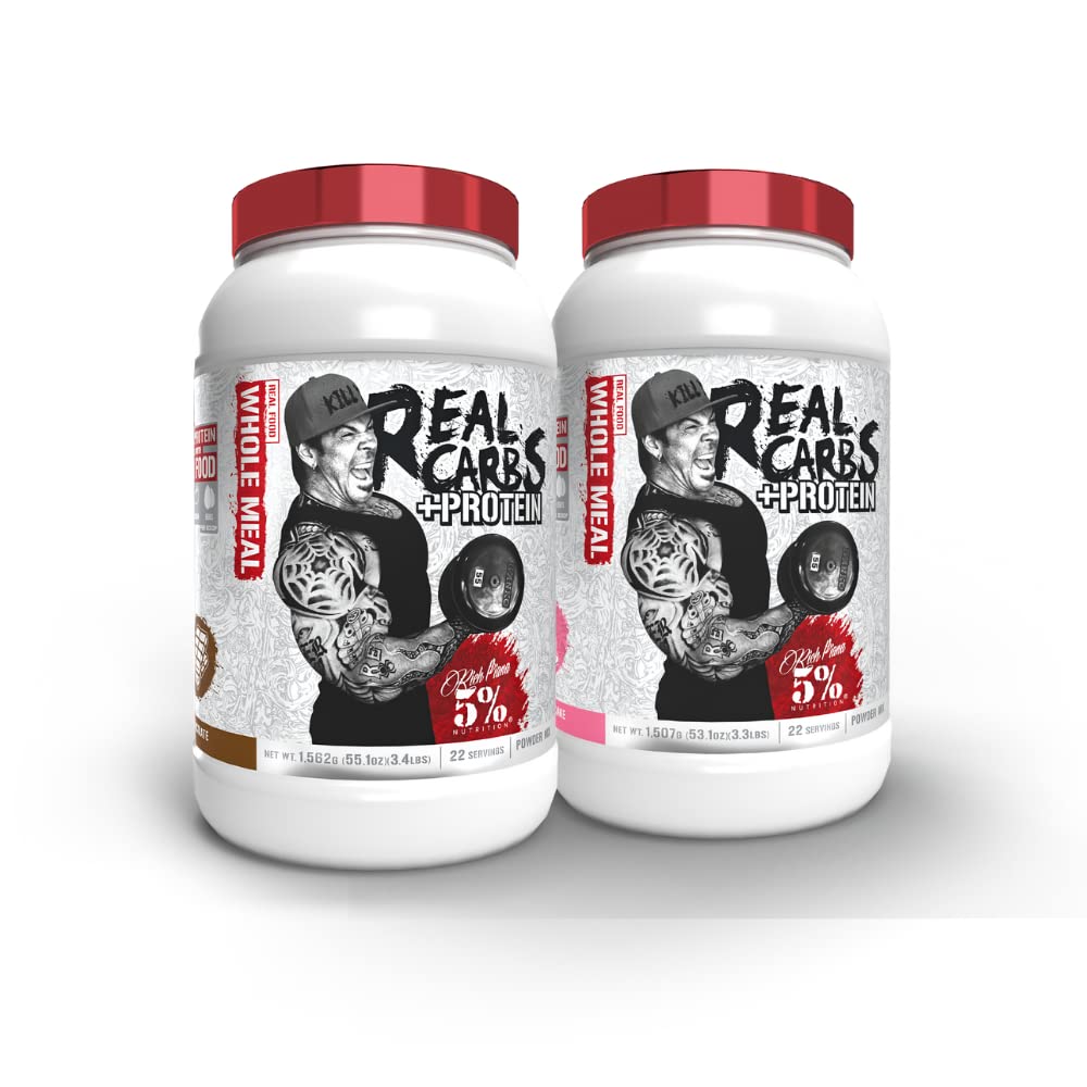 ANABOLIC MUSCLE GROWTH PRESERVATION, whether you're building or cutting. Amazing flavors mix easily with water, milk, smoothies and other recovery supplements any time of day. Dairy free, lactose free, whey free, and dextrin derivatives free. No added sugar. 30 GRAMS WHOLE GRAIN OAT, SWEET POTATO BROWN RICE for long lasting, low glycemic energy after a workout or whenever you need a snack or meal. Meet your macros!. 21 GRAMS BEEF, EGG, CHICKEN CHICKPEA powder as medium and slow-digesting sources of protein. Promotes the ideal mass building environment for muscle with high natural BCAA content, MCTs, low fat, cholesterol and sodium content. HIGH QUALITY REAL FOOD: A nutritious and delicious meal replacement powder with quality carbohydrates, full spectrum animal-based and legume proteins. Rich in iron, magnesium, potassium, and Vitamin A. 2 PACK BUNDLE: 2 Tubs of Real Carbs Protein (1 Chocolate, 1 Birthday Cake).