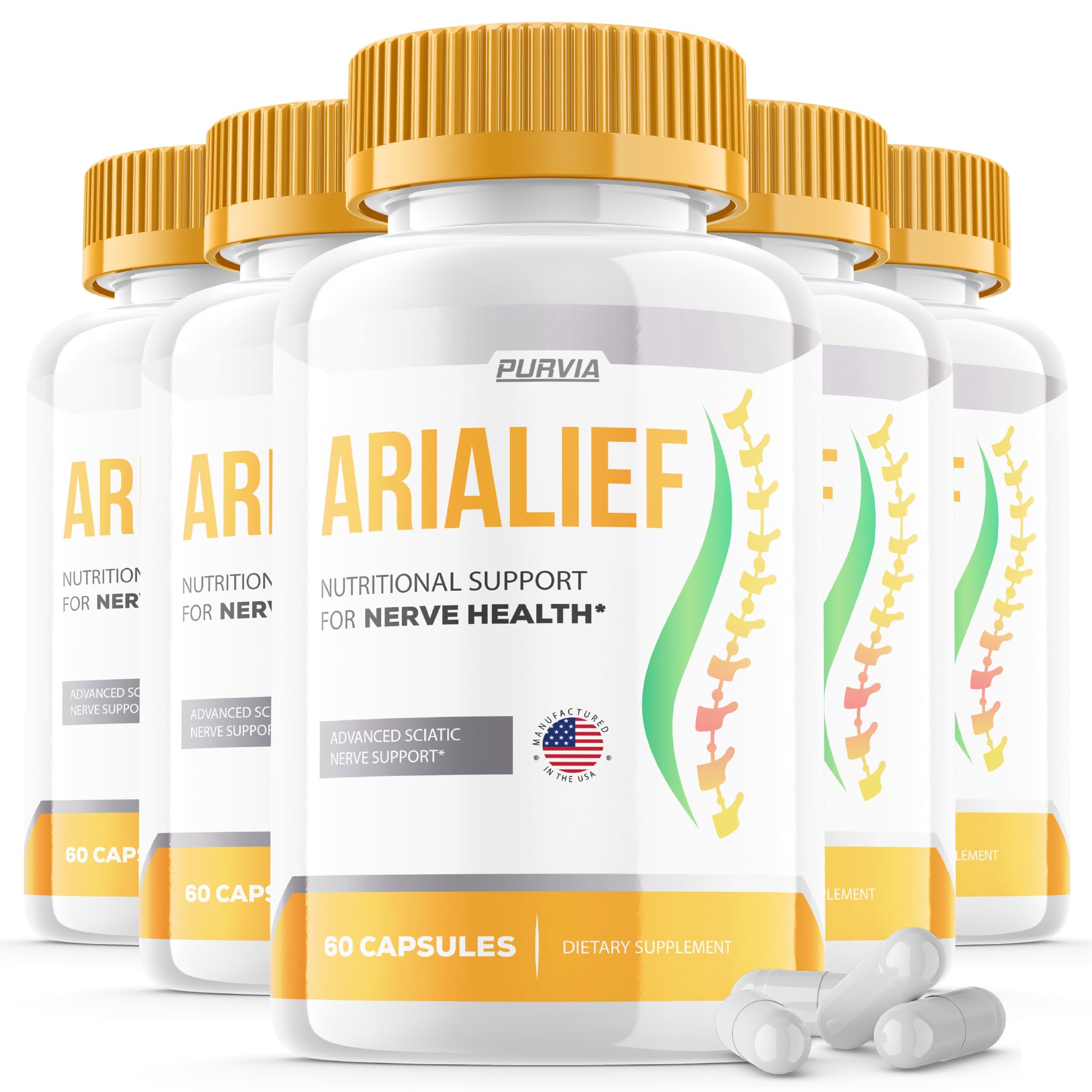 (5 Pack) Arialief Capsules Sciatica - Official Formula - Arialief Vitamin Supplement Advanced Strength Formula Arialief Capsules Nutritional Support Maximum Strength Overall Wellness (300 Capsules)