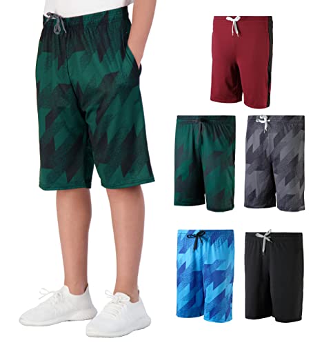 5 Pack: Boys Girls Youth Teen Printed Camo Dry-Fit Sport Active Athletic Shorts Large Set 4