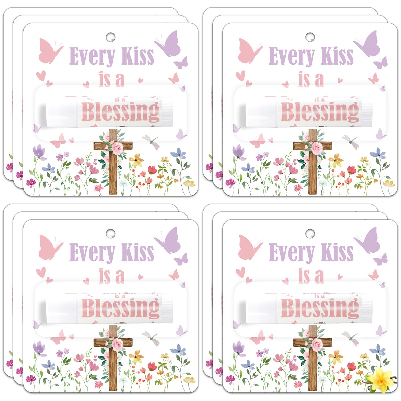 Ideal Gift: These lip balm gifts are an excellent choice for women's events, such as church scripture studies or appreciation gatherings, where a small token of gratitude can make a big impact. With exquisite design and practical functions, every guest can take away a wonderful memory, which is both practical and memorable. On-the-Go Friendly: Each religious church lip balm is individually wrapped, so you can carry it with you and use it anytime, anywhere. Whether it is daily use or going out, it can be easily put into a pocket or handbag, providing you with convenience. Nourishing Lip Care: Made with quality natural ingredients, gentle and non-irritating with a fresh scent, leaving lips soft and smooth, allow you to always maintain lip makeup and show charming charm. 5 Pack Bulk Set: You will get 5 Pack faith bible verse lip balm bulk, classic rich design can meet your daily needs, the lip balm card is about 3.5inches 9cm, and the lip balm is each approx. 2.7 inches 6.7 cm in height, with a capacity of about 0.15 oz, you can also share with your family and partners. Christian floral Design: The lip balms are housed in elegant tubes adorned with an elegant design with the inspiring message, "Every Kiss is a Blessing," accompanied by a depiction of a cross adorned with flowers. In addition to their practical functions, they also add a relaxing touch to your party, whether for daily use or festive occasions.