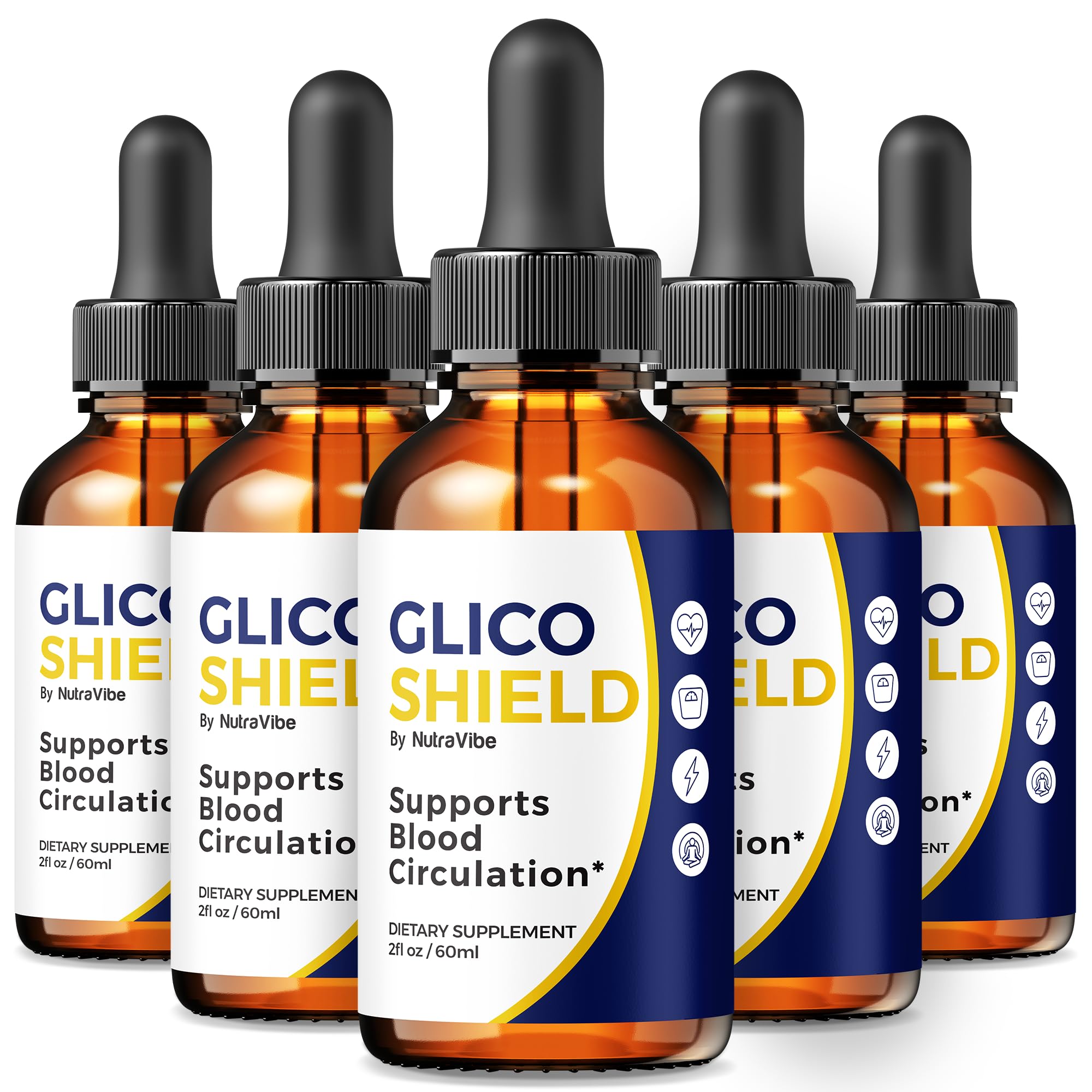 (5 Pack) GlicoShield Premium Liquid Drops Formula to Help Support Natural Flow Balanced Levels & Circulation Clean Natural Gotas | Easy and Convenient GlicoShield Daily Use (150 Servings)