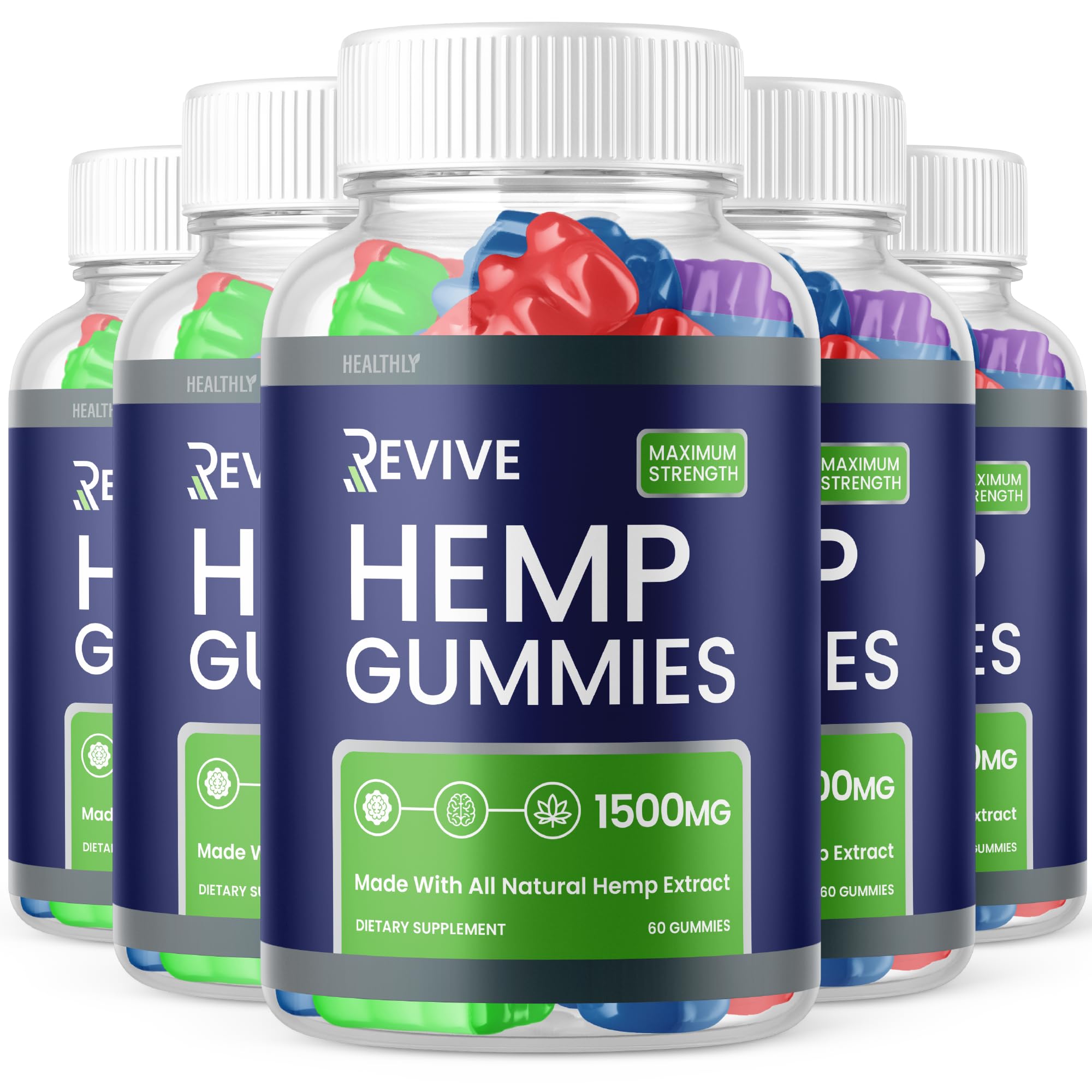 (5 Pack) Revive Gummies - Revive Hemp Gummies Premium Hemp Blend Revive Hemp Advanced Formula Hemp Extract Supplement Revive Hemp Gummy Big Size 25mg Per Gummy 1500mg Per Bottle New (300 Gummies)