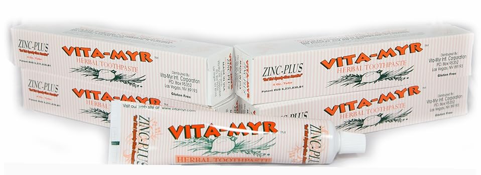 5 Pack Vita-Myr Oral Care Zinc+ Toothpaste - All-Natural Safe and Effective Oral Care Solution - 4 Ounce Each