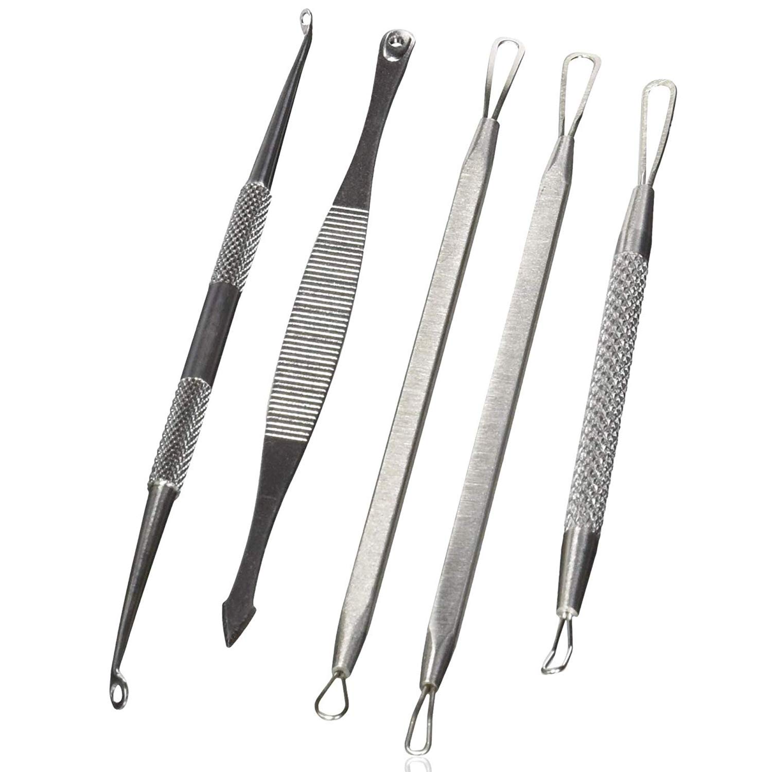 5 Pieces Blackheads Remover Dermatologist Grade Kit Extractor Tool Set Treats Pimples Facial Acne Comedones