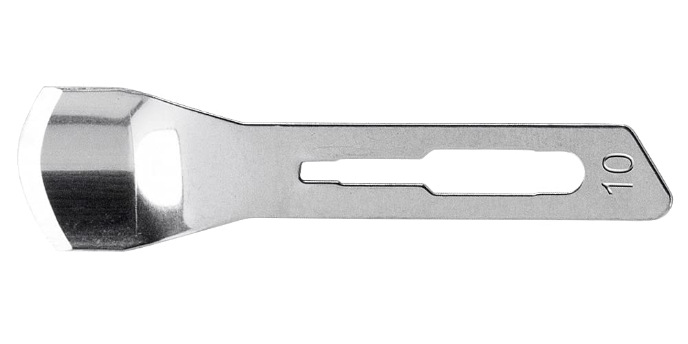 Steril Each blade is individually packaged Material: carbon steel The hollow chisel blades foot care are available in the sizes No.: 1, 2, 3, 4, 5, 6, 8, 10, 12 and 15 The sizes (figure) refer to the front sharpnessBlade width in mm.In Podology Practice, the hollow chisel blades have firmly anchored as an essential instrument of foot care.Working in foot care needs sharp instruments sounds to treat the foot precisely and exactly.Depending on the use, between 10 different sharp blade widths can be selected in the footplegation.Regardless of whether in the nail fold area, toe between ore or it should be removed in a large scale.The Hohlmeissel blades are available in sizes No.: 1, 2, 3, 4, 5, 6, 8, 10, 12 and 15 - the sizes refer to the front sharp blade width in mm.Regardless of whether in the fine in the nail fold area, toe between ore or it should be removed in a large scale.Working in foot care needs sharp blades instruments.Hohlmeißelklingen Foot care podology.Steril jede Klinge ist einzeln verpackt Material: Carbon Stahl Die Hohlmeißelklingen Fußpflege sind in den Größen lieferbar Nr.: 1, 2, 3, 4, 5, 6, 8, 10, 12 und 15 Die Größen (Figur) bezeichnen die vordere scharfe Klingenbreite in mm. In der Podologie Praxis haben sich die Hohlmeißelklingen als unerlässliches Instrument der Fußpflege fest verankert. Arbeiten in der Fußpflege benötigen scharfe Instrumente Klingen um exakt und genau den Fuß zu behandeln. In der Fußplegebehandlung kann je nach Einsatz zwischen 10 verschiedenen scharfen Klingen-Breiten gewählt werden. Egal ob im Nagelfalzbereich, Zehenzwischenbereich oder es soll großflächig Hornhaut abgetragen werden.Die Hohlmeißel-Klingen sind in den Größen lieferbar Nr.: 1, 2, 3, 4, 5, 6, 8, 10, 12 und 15 - Die Größen bezeichnen die vordere scharfe Klingenbreite in mm. Egal ob im fein im Nagelfalzbereich, Zehenzwischenbereich oder es soll großflächig Hornhaut abgetragen werden. Arbeiten in der Fußpflege benötigen scharfe Klingen Instrumente. Hohlmeißelklingen Fußpflege Podologie.50 Stk, Nr.10 Hohlmeißelklingen Fußpflege Klingen, Kosmetex 50 Stk Nr.10
