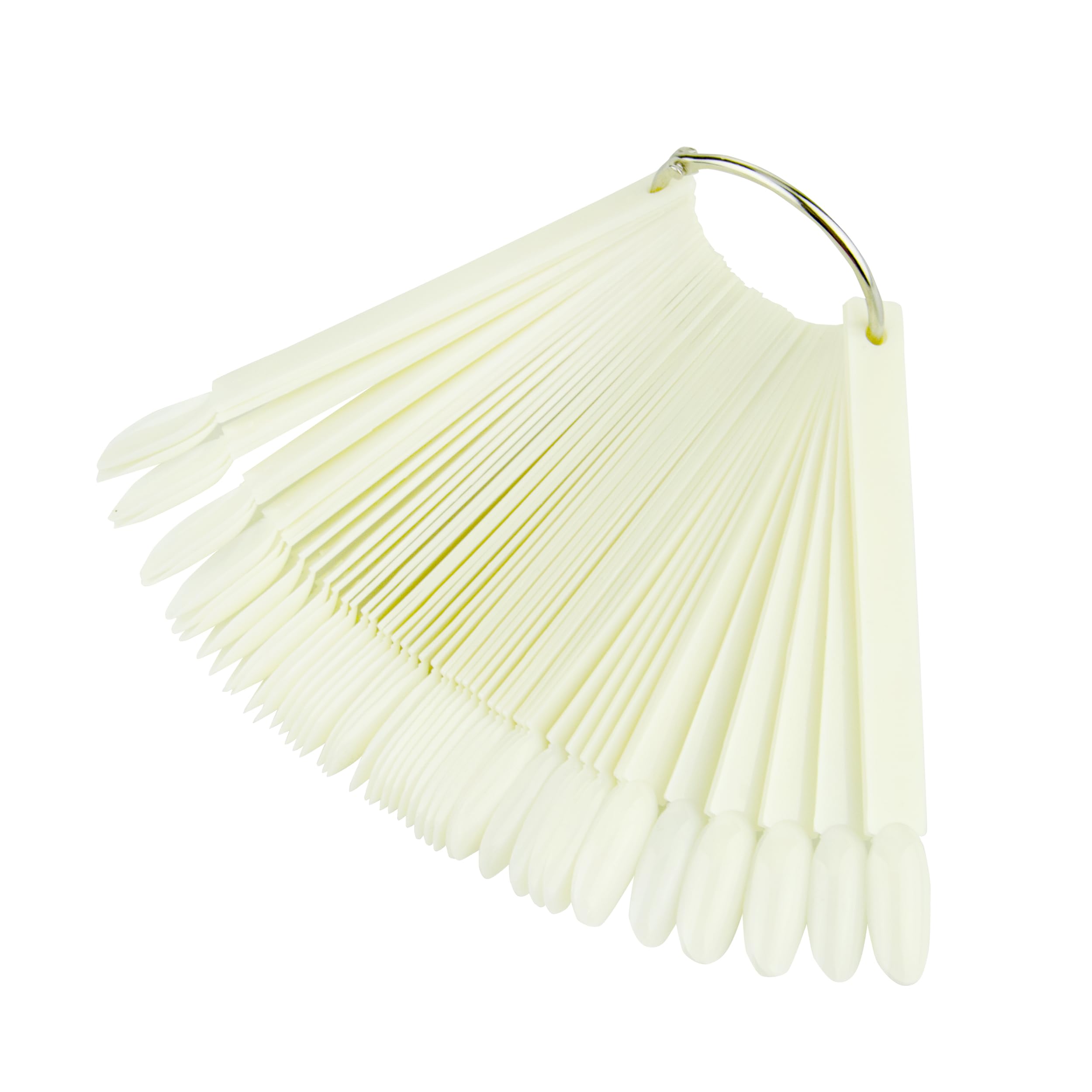 Ein praktischer Helfer - Ideal für Nagelstudios, Präsentationen, das Sammeln von Nagellacken und das Entwerfen von Nagelkunst. Perfekt sowohl für den professionellen Einsatz zum Erstellen von Nagelkunst-Designs als auch für Heimanwender zum Üben und Erstellen eigener Kreationen. Einfache Aufbewahrung - Jedes Nageldisplay wird mit einem Metallanzeigenring geliefert, der das Halten und Tragen erleichtert. Machen Sie sich keine Sorgen mehr um die Lagerung. ?Sofortige Farbauswahl?Perfekt für die Organisation von Nageldesigns und die Anzeige von Gelfarben. Die langen Stäbchen ermöglichen es Ihnen, Ihren Kunden sofort Farben und Designmuster zu präsentieren. 50 Nagelsticks pro Set - Jedes Set enthält 50 Sektorfächer, um bis zu 50 verschiedene Nagellackfarben anzuzeigen und zu sammeln. Top Qualität garantiert - Diese Nagelmusterstäbchen bestehen aus hochwertigem Kunststoff, sind robust, langlebig, und ihre glatte Oberfläche lässt sich leicht polieren.