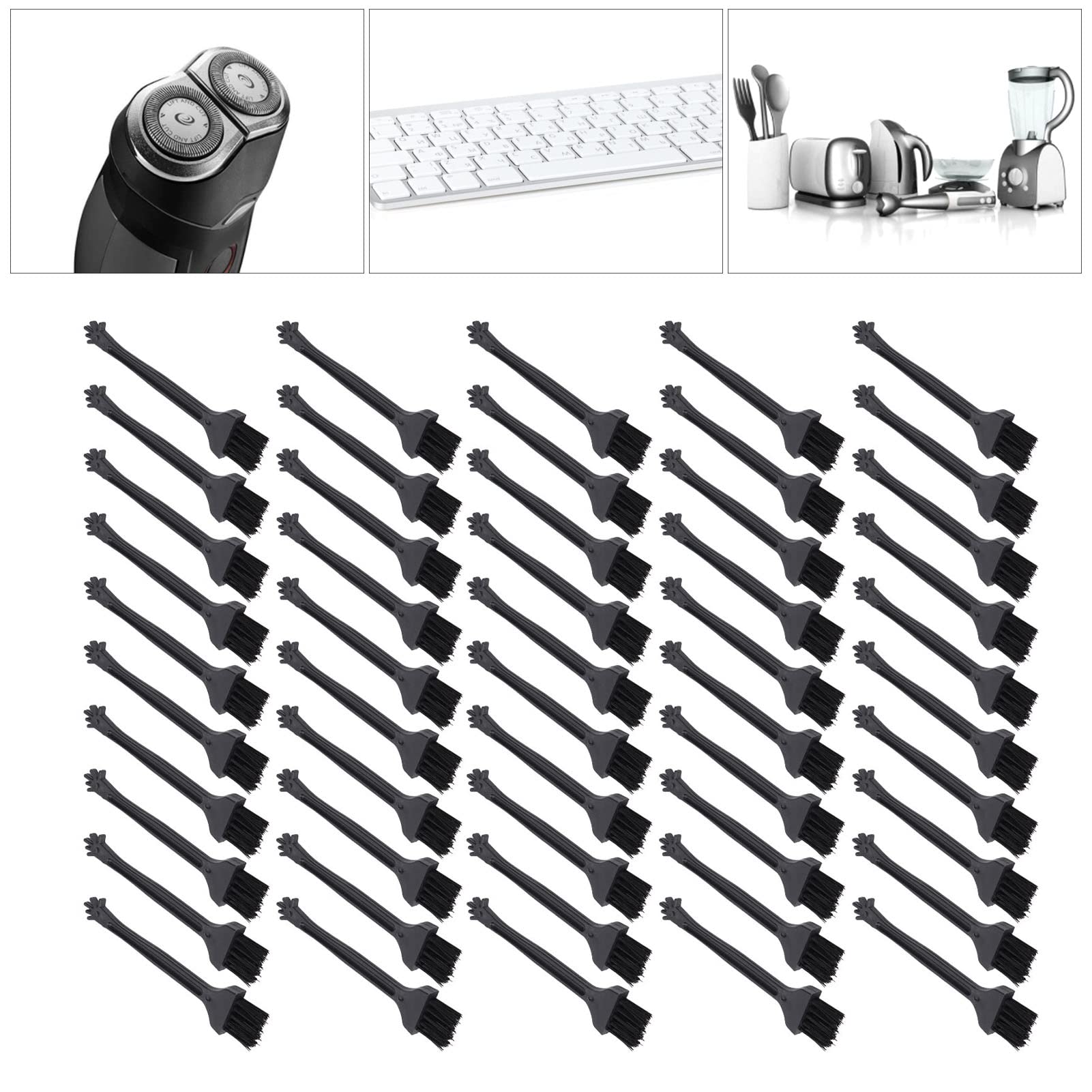 User tips: Due to the black color, they are easy to recognize among other cleaning agents.Since it is a disposable article, you also do not have to worry about cleaning and storing after each use.Specification: Material: PP + nylon, quantity: 50 pieces.Application: They are suitable for cleaning razors, cups, baby bottles, window columns, corners, telephones or keyboards.Properties: The nylon bristles effectively remove dirt, dirt and deposits, while the PP handles offer a comfortable handle for simple maneuverability.Description: These cleaning brushes should help you reach tight rooms and easy to clean.Benutzertipps: Durch die schwarze Farbe sind sie unter anderen Reinigungsmitteln leicht zu erkennen. Da es sich um Einwegartikel handelt, müssen Sie sich außerdem keine Gedanken über die Reinigung und Aufbewahrung nach jedem Gebrauch machen. Spezifikation: Material: PP + Nylon, Menge: 50 Stück. Anwendung: Sie eignen sich zum Reinigen von Rasierern, Tassen, Babyflaschen, Fensterspalten, Ecken, Telefonen oder Tastaturen. Eigenschaften: Die Nylonborsten entfernen effektiv Schmutz, Dreck und Ablagerungen, während die PP-Griffe einen bequemen Griff für einfache Manövrierbarkeit bieten. Beschreibung: Diese Reinigungsbürsten sollen Ihnen helfen, enge Räume zu erreichen und schwer zugängliche Stellen leicht zu reinigen.50 Stück Einweg-Mini-Reinigungsbürsten Mit Nylonborsten Und PP-Griffen Für Rasierer, Tassen, Babyflaschen, Fensterlücken, Ecken, Telefone Oder Tastaturen, SCHWARZ