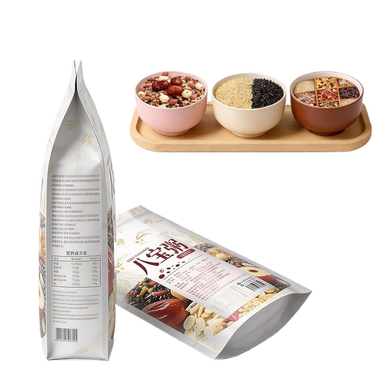 500 G X 3 Sacs De Mélange Porridge Aux Huit Trésors, Grains Entiers Assortis For Un Congee Facile À Cuisiner, Petit-déjeuner Et Collation Sains, Fraîcheur Scellée Sous Vide