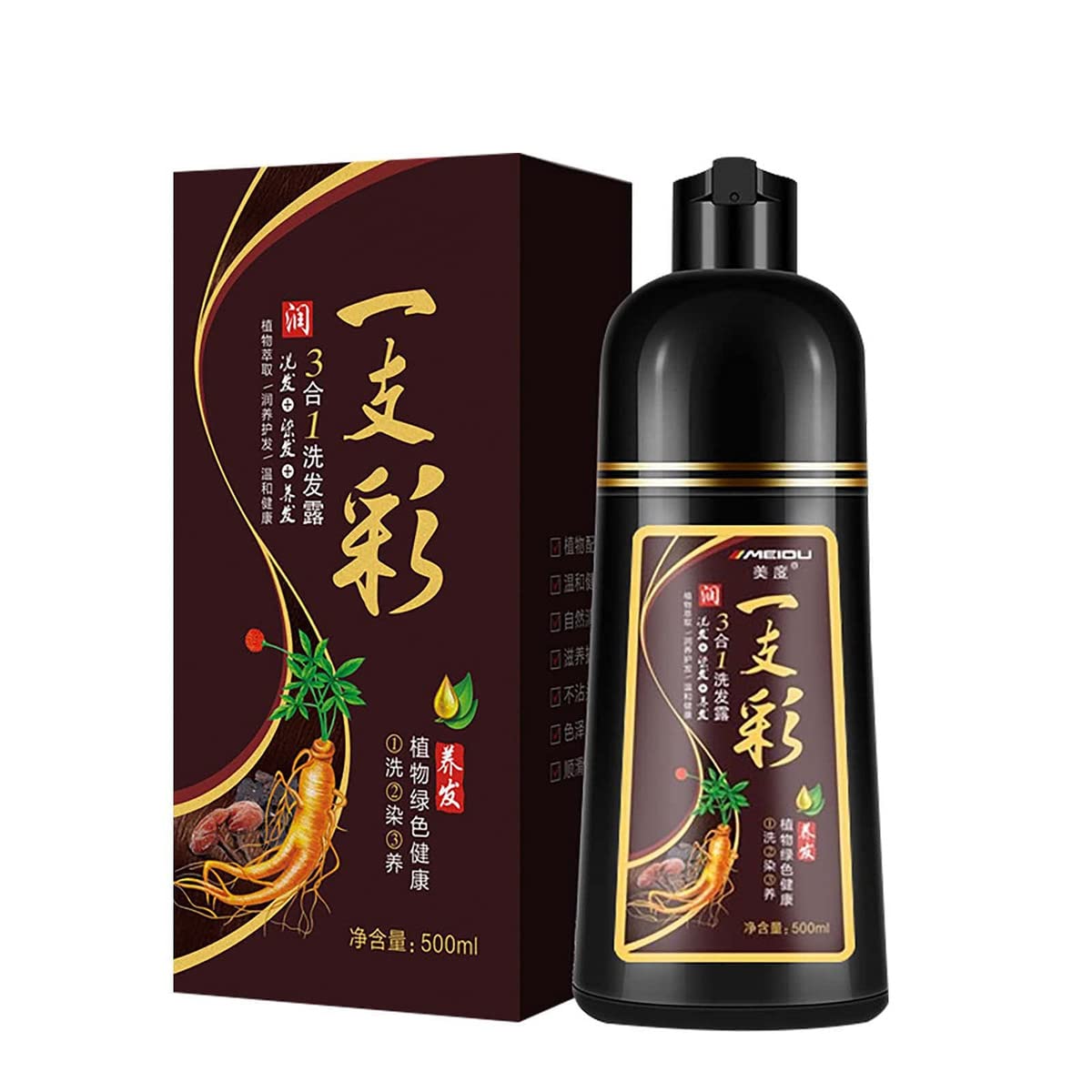 : Characteristic: Ginger Black Hair Shampoo Non-Allergenic Hair Dye, Natural ginger extract, collagen and ginkgo biloba extract help strengthen hair fibers from the inside out. After washing, hair will be more shiny, soft and smooth, which will help prevent hair loss and repair hair from the roots. The full pigment factor covers white hair perfectly and restores a black and completely natural hair. It contains natural herbs and olive oil to protect the scalp from allergies. About color and coloring 1.Hair that has been dyed black and baked with black oil cannot be colored in all colors (bleaching treatment is required) 2.Chestnut?Coffee?Purple?Wine Red?These 4 colors are exclusively for the use of native hair on black background. They cannot cover white hair. If the hair has already been dyed with dark colors, brown cannot be used. 3. Deep coffee and deep wine red two special white hair colors, only for white hair customers, and the whiter the hair, the brighter the color and the overall darker effect of less white hair and more black hair. It can be used in the sun. Discover the deep burgundy effect of black coffee. Package Included: 1 bottle of natural herbal shampoo for black hair DIRECTIONS FOR USE Apply to wet hair, massage to form a foam, leave on for a few minutes, then rinse thoroughly.Save Time and Money: Compared to traditional hair dye, it has the advantage of low cost, time saving, and convenience. Now you can dye your hair quickly and easily at home and save a ton of money!. Get Lustrous Black Hair in Minutes: A single pack of hair darkening shampoo will take just minutes to give you a lustrous black hair color that will last up to 30 days. Refresh Your Hair Color Instantly: Counter the signs of aging and forget about white and gray hair. Just apply a pump of this instant hair coloring shampoo and look as young and vibrant as you feel. Nourishing and Restorative: Helps repair the surface of damaged hair, locks in moisture and shine, and controls frizz. Repairs, softens, and strengthens dry, brittle, frizzy, overworked, and damaged hair. Herbal Darkening Shampoo: Natural ginger extract, collagen, and ginkgo biloba extract help strengthen hair fibers from the inside out. The coloring shampoo also protects your scalp from drying out to prevent dandruff. Choose from a variety of colors available and use it at the convenience of your own home.  : Caractéristique: Shampooing cheveux noirs au gingembre Teinture capillaire non allergène, L'extrait naturel de gingembre, le collagène et l'extrait de ginkgo biloba aident à renforcer les fibres capillaires de l'intérieur vers l'extérieur. Après le lavage, les cheveux seront plus brillants, doux et lisses, ce qui aidera à prévenir la chute des cheveux et à réparer les cheveux dès la racine. Le facteur de pigment complet couvre parfaitement les cheveux blancs et restaure un cheveu noir et entièrement naturel. Il contient des herbes naturelles et de l'huile d'olive pour protéger le cuir chevelu des allergies. À propos de la couleur et de la coloration 1.Les cheveux qui ont été teints en noir et cuits avec de l'huile noire ne peuvent pas être colorés dans toutes les couleurs (un traitement de décoloration est requis) 2.Châtaigne?Café?Violet?Vin Rouge?Ces 4 couleurs sont exclusivement destinées à l'utilisation de cheveux indigènes sur fond noir. Ils ne peuvent pas couvrir les cheveux blancs. Si les cheveux ont déjà été teints avec des couleurs foncées, le châtain ne peut pas être utilisé. 3. café profond et rouge vin profond deux couleurs de cheveux blancs spéciaux, uniquement pour les clients aux cheveux blancs, et plus les cheveux sont blancs, plus la couleur est brillante et l'effet global plus sombre de moins de cheveux blancs et plus de cheveux noirs. Il peut être utilisé au soleil. Découvrez l'effet bordeaux profond du café noir. Emballage inclus: 1 bouteille de shampooing naturel à base de plantes pour cheveux noirs MODE D'EMPLOI Appliquer sur les cheveux mouillés, masser pour former une mousse, laisser poser pendant quelques minutes, puis rincer abondamment.Gagnez du temps et de l'argent : par rapport à la teinture capillaire traditionnelle, il présente l'avantage d'un faible coût, d'un gain de temps et d'une commodité. Vous pouvez maintenant vous teindre les cheveux rapidement et facilement à la maison et économiser une tonne d'argent !. Obtenez des cheveux noirs lustrés en quelques minutes : un seul paquet de shampooing assombrissant les cheveux ne prendra que quelques minutes pour vous donner une couleur de cheveux noirs lustré qui durera jusqu'à 30 jours. Rafraîchissez votre couleur de cheveux instantanément : contrez les signes de l'âge et oubliez les cheveux blancs et gris. Il suffit d'appliquer une dose de ce shampooing colorant capillaire instantané et d'avoir l'air aussi jeune et éclatant que vous vous sentez. Nourrissant et réparateur : aide à réparer la surface des cheveux abîmés, emprisonne l'hydratation et la brillance et contrôle les frisottis. Répare, adoucit et renforce les cheveux secs, cassants, crépus, surmenés et abîmés. Shampooing assombrissant à base de plantes : l'extrait naturel de gingembre, le collagène et l'extrait de ginkgo biloba aident à renforcer les fibres capillaires de l'intérieur vers l'extérieur, le shampooing colorant protège également votre cuir chevelu du dessèchement pour éviter les pellicules. Choisissez parmi une variété de couleurs disponibles et utilisez-le à la convenance de votre propre maison.