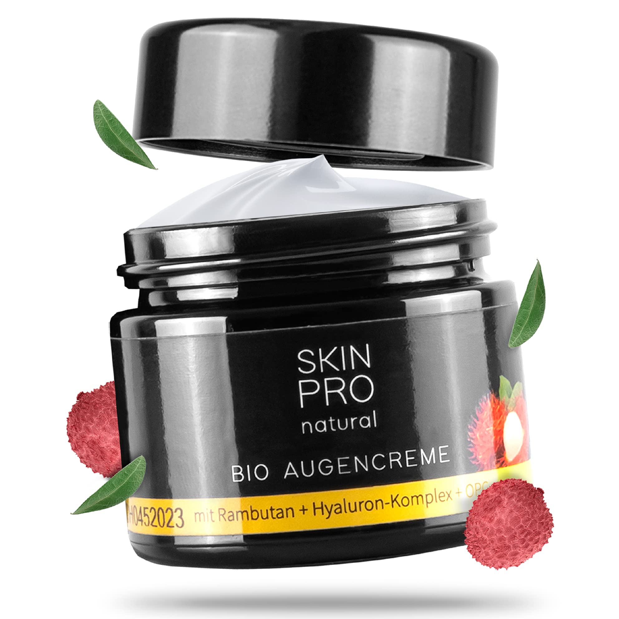 ?? Ideal gift - thanks to the large selection of products, you will always find the right combination for a first -class natural cosmetic gift set.Have a special joy with a night cream, eye cream or a suitable face serum from our ""Skin Pro Natural"" collection.?? All-in-one solution-In combination with the complementary products from the Skin Pro Natural Nursing series, this eye cream gives you a always well-damp and bright facial skin around the eyes.Our well-tolerable skin care means are equally suitable for women and men, for intensive and soothing skin care, regardless of the skin type.?? Vegan care product - to guarantee you the best possible cosmetic items, we pay particular attention to the use of high -quality ingredients and animal -free production.Our organic eye cream is free of pollutants and harmful additives such as microplastics, mineral oils, silicones and parabens.?? Anti -aging effect - with daily use of the dermatable moisturizing moisturizer with high -quality aloe vera, rambutan and opc, you will let your dry skin shine in new shine in the future.A universal anti-fold cream with regenerative effect, to prevent premature skin aging, improvement in the skin structure and increase in skin elasticity.?? refreshing eye care - Our Skin Pro Natural Bio eye cream with natural hyaluron offers optimal moisture donation for the small wrinkles around the eyes and supplies the skin with sufficient anti -oxidants and essential nutrients.?? IDEALES GESCHENK - Dank der großen Produktauswahl findest Du immer die passende Kombination für ein erstklassiges Naturkosmetik Geschenkset. Mache Deinen Liebsten eine besondere Freude mit einer Nachtcreme, Augencreme oder einem passenden Gesichtsserum aus unserer „SKIN PRO natural“ Kollektion. ?? ALL-IN-ONE LÖSUNG - Im Zusammenspiel mit den Komplementär-Produkten aus der SKIN PRO natural Pflegeserie, verleiht Dir diese Augencreme eine stets gut durchfeuchtete und strahlend schöne Gesichtshaut um die Augen. Unsere gut verträglichen Hautpflege-Mittel eignen sich gleichermaßen für Damen und Herren, für eine intensive und wohltuende Hautpflege, unabhängig vom Hauttyp. ?? VEGANES PFLEGEPRODUKT - Um Dir die bestmöglichen Kosmetikartikel zu garantieren, achten wir besonders stark auf die Verwendung hochqualitativer Inhaltsstoffe und eine tierversuchsfreie Herstellung. So ist unsere Bio Augencreme FREI VON Schadstoffen und schädlichen Zusätzen wie Mikroplastik, Mineralöle, Silicone und Parabene. ?? ANTI-AGING EFFEKT - Bei täglicher Anwendung der mit hochwertigem Aloe Vera, Rambutan und OPC versetzten, hautstraffenden Feuchtigkeitscreme, lässt Du deine trockene Haut zukünftig im neuen Glanz erstrahlen. Eine universelle Antifaltencreme mit regenerativer Wirkung, zur Vorbeugung vorzeitiger Hautalterung, Verbesserung der Hautstruktur und Steigerung der Haut-Elastizität. ?? ERFRISCHENDE AUGENPFLEGE - Unsere SKIN PRO natural Bio Augencreme mit natürlichem Hyaluron bietet optimale Feuchtigkeitsspende für die kleinen Fältchen um die Augen und versorgt die Haut mit ausreichend Anti-Oxidantien sowie essenziellen Nährstoffen.50ml Bio AUGENCREME mit Hyaluron-Säure und Aloe Vera - Hocheffektive Anti Aging Feuchtigkeits-Creme zur täglichen Gesichtspflege der Augen - Gesichtscreme Vegan - SKIN PRO natural® Made in Germany