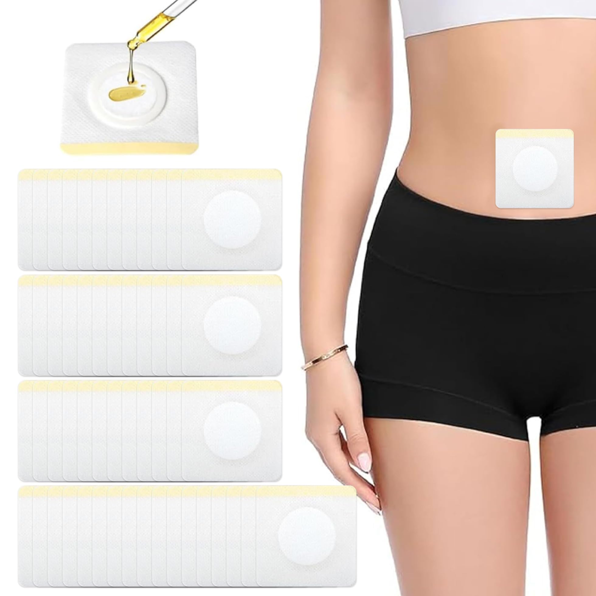 Description: The 50PCS Castor Oil Belly Button Patches are an easy-to-use wellness aid designed for targeted application to the belly, joints, knees, and soles of the feet. Each patch features a breathable non-woven surface for skin comfort, a cotton core to absorb essential oils, and a waterproof TPU film to prevent leaks. The soft sponge edging ensures a secure and gentle fit without irritating sensitive skin. At 2.76 x 2.76 inches, the patches are compact and travel-friendly, making them great for use during work, rest, travel, or exercise. Simply apply to clean, dry skin-no heat or tools required. With a self-adhesive design and oil-locking structure, these patches offer a clean and convenient castor oil experience anytime, anywhere. Features:. -Color: White. -Material: Flax. -Size: 7x7 cm 2.76x2.76 inch. Note: Manual measurement, please allow slight errors on size. The colors may exist slight difference due to different screens. Package Including 50 Belly PatchesMulti-Zone Support: These castor oil patches are designed for use on the belly button, joints, knees, and soles of the feet. Whether you're resting, reading, working, or exercising, they provide gentle localized comfort. Castor Oil Belly Button Patch. Self-Adhesive Travel-Ready: No additional tools needed-just peel and stick. The patch measures 2.76 x 2.76 inches, perfect for packing in a travel kit or using at work, in transit, or while relaxing at home. Belly Button Patch. Breathable Non-Woven Fabric: Crafted from soft, skin-friendly non-woven material, the patch allows airflow to keep your skin dry and comfortable during long-term use without irritation or stickiness. Belly Patch. Oil-Proof Waterproof Film: The TPU protective film layer keeps the castor oil and moisture locked in while preventing leakage or mess, making it ideal for overnight use or daily wear under clothes. Castor Oil Patches Belly Button. Cotton Core Layer Sponge Edge: Each patch features an absorbent cotton core that effectively holds essential oils. The sponge edge ensures a soft fit against your skin, enhancing comfort while preventing edges from curling. Belly Patches.