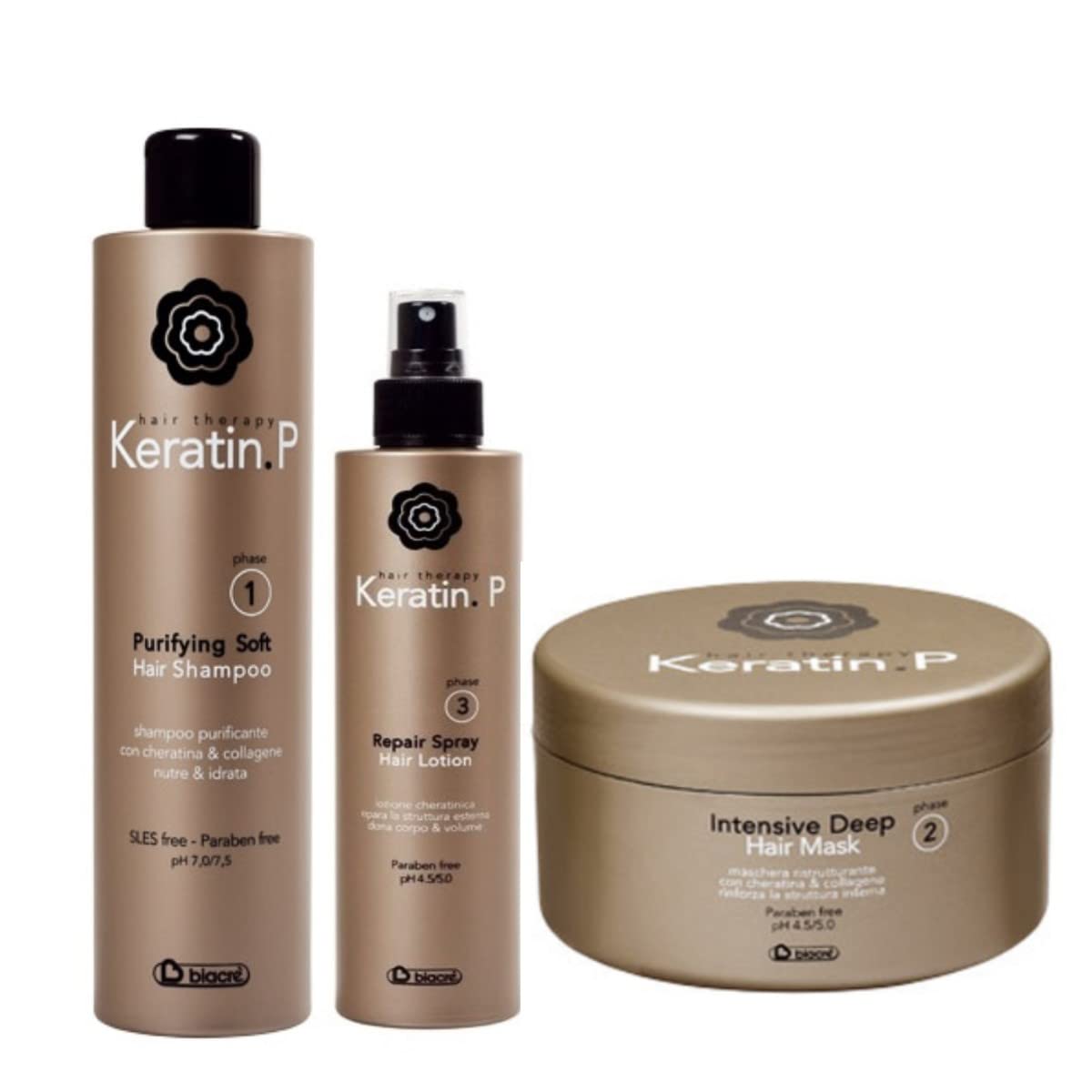 5665 Complete Keratin P Biacre' Restructuring Hair Treatment Kit: Shampoo + Mask + Spray Lotion